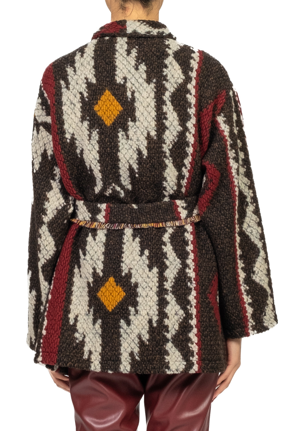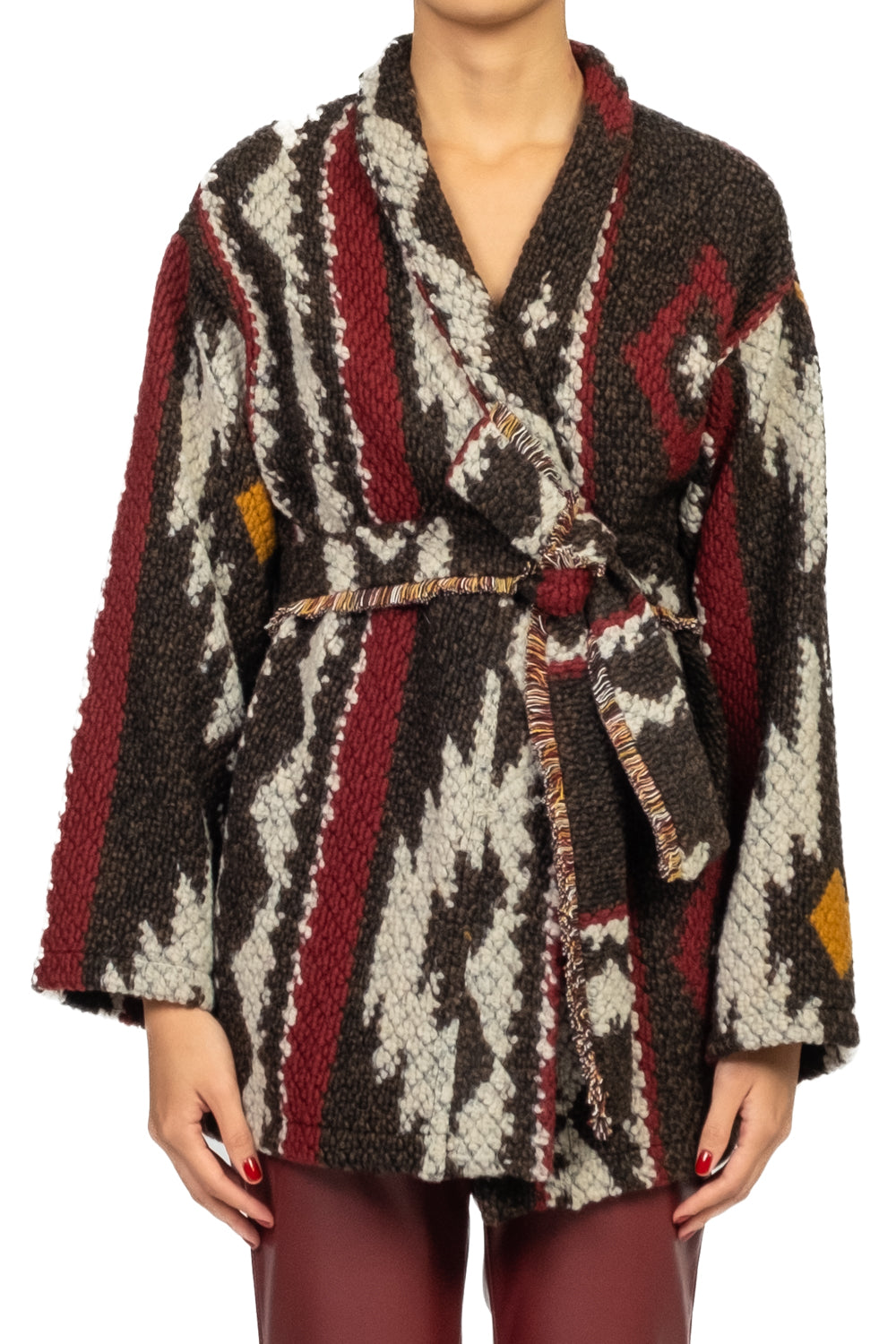 • Un capo dal carattere deciso e dallo stile contemporaneo. Questo caban presenta una vivace fantasia etnica che aggiunge personalità e originalità al look, mentre la cintura in vita permette di definire la silhouette con eleganza. Il taglio strutturato e la linea morbida lo rendono perfetto per completare outfit quotidiani o più ricercati con un tocco distintivo.