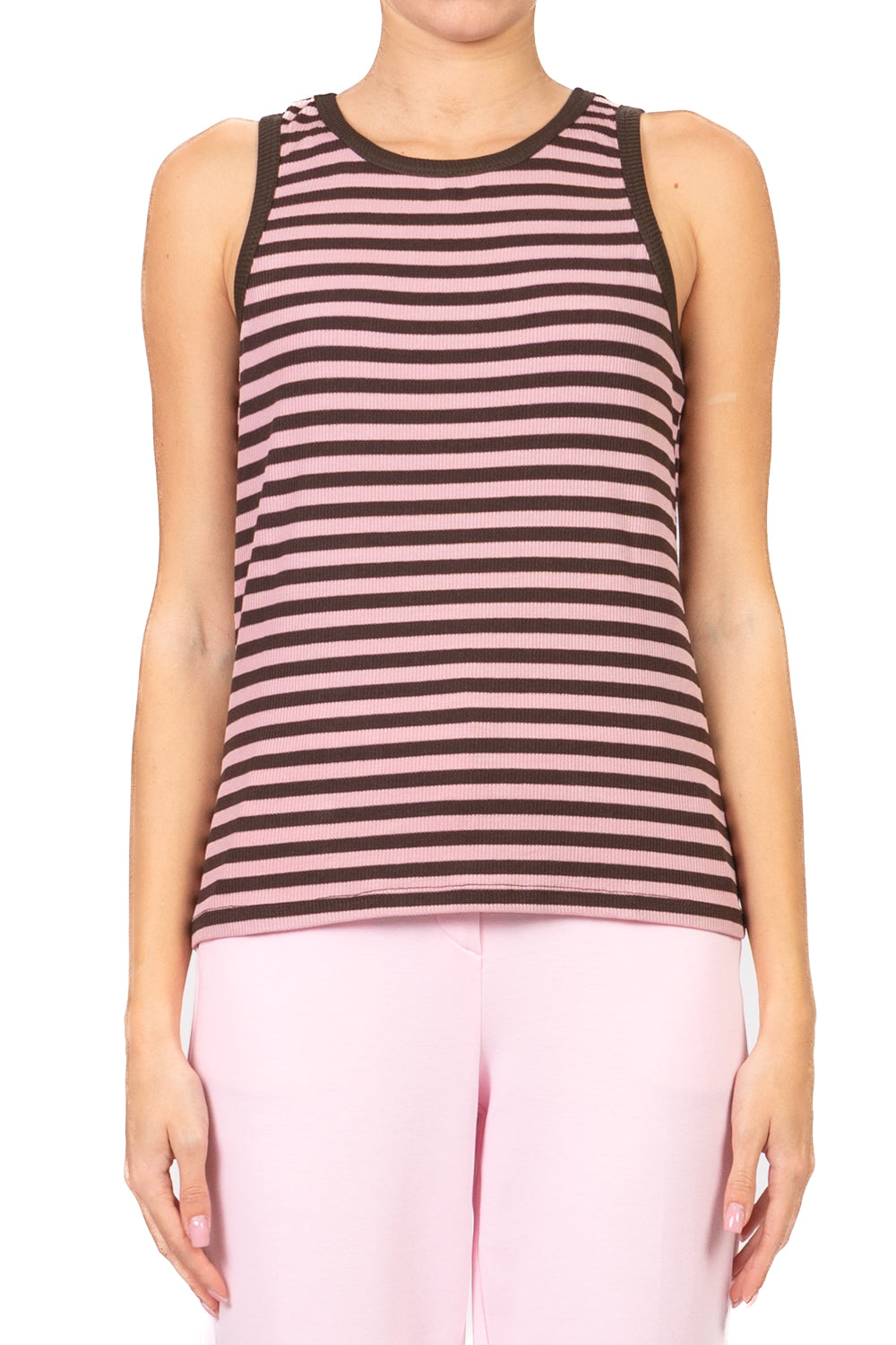 • Canotta a vogatore realizzata in tessuto a costine con motivo rigato, dal taglio aderente e confortevole. Perfetta per look casual estivi o da abbinare a capi eleganti in layering, unisce praticità, stile e una texture moderna che valorizza la silhouette.