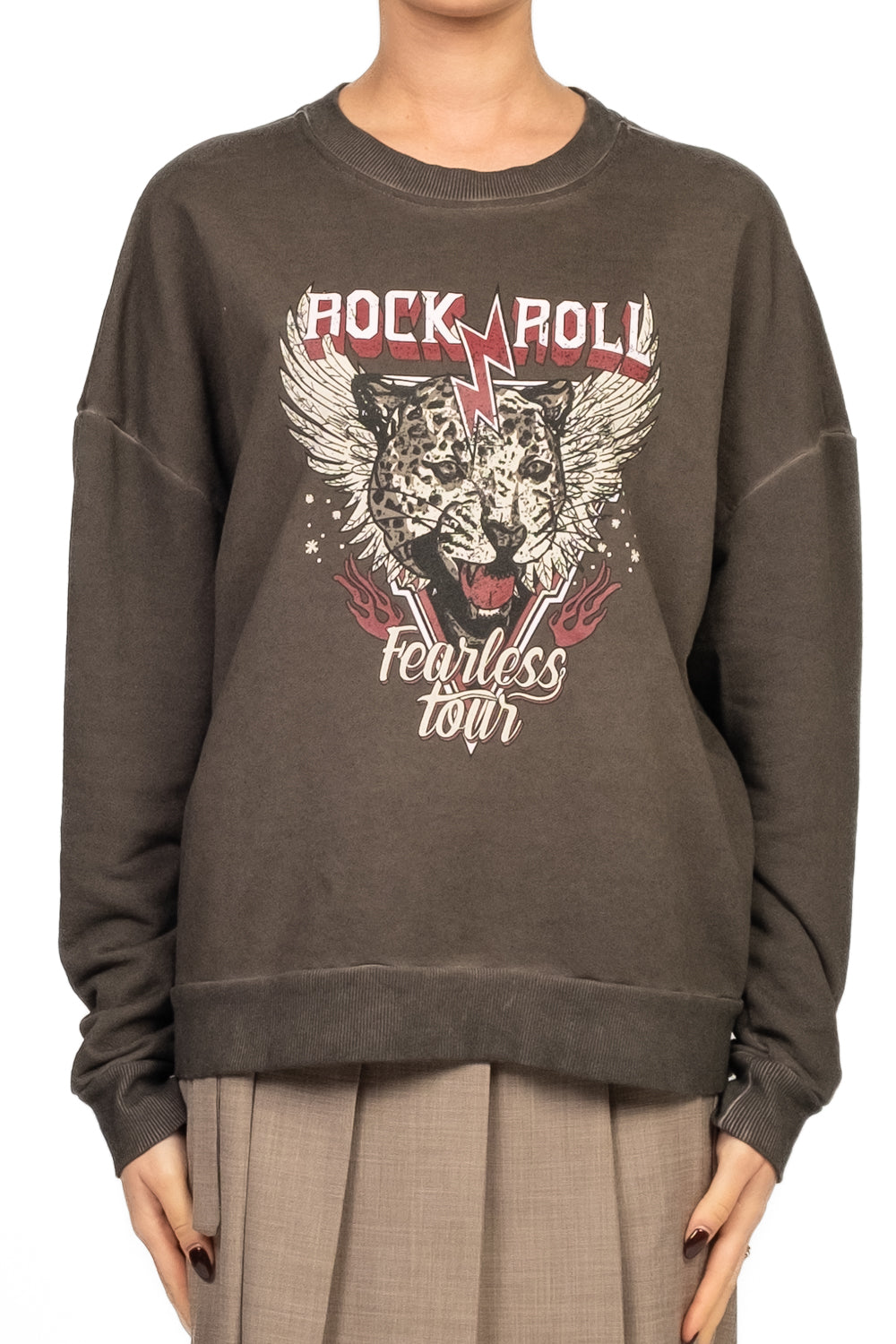 La felpa girocollo con stampa è un capo casual dal carattere deciso, perfetto per chi ama unire comfort e stile. Il classico taglio con collo tondo, maniche lunghe e bordi a costine offre una vestibilità rilassata ma curata, adatta sia ai look sportivi che a quelli più urbani.