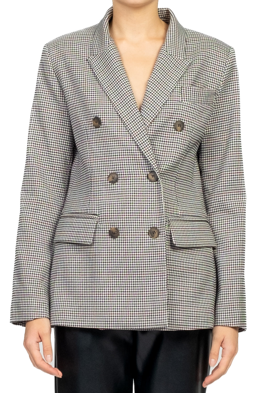 • Un classico con un twist creativo. Questa giacca doppiopetto a quadretti unisce il fascino del tailoring tradizionale a un dettaglio inaspettato: un paio di guanti decorativi non removibili inseriti nel taschino frontale, per un effetto stilistico sorprendente e ironico. Dotata di tasche frontali funzionali e spacchi posteriori che aggiungono movimento, è la scelta perfetta per chi ama distinguersi con eleganza e personalità.