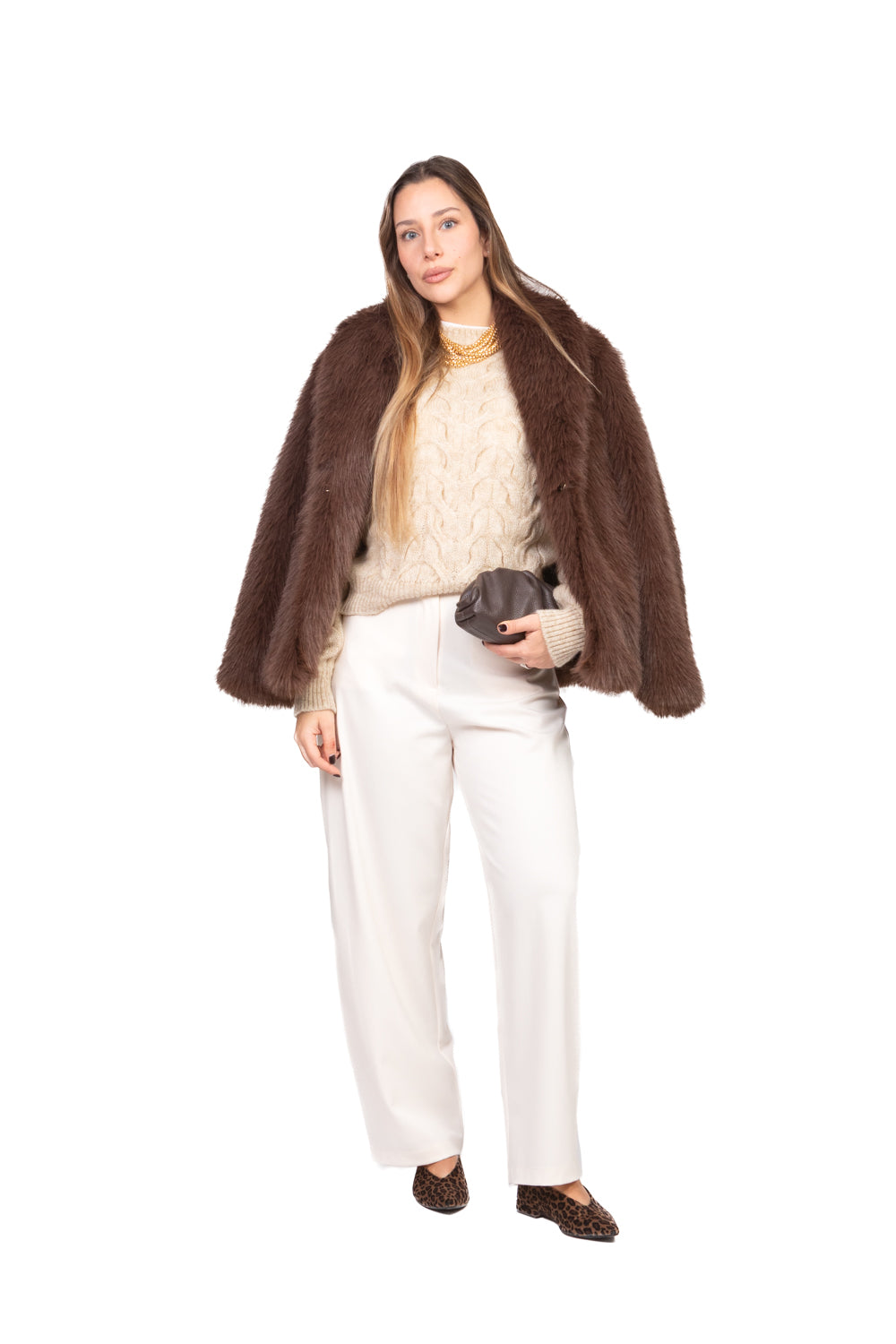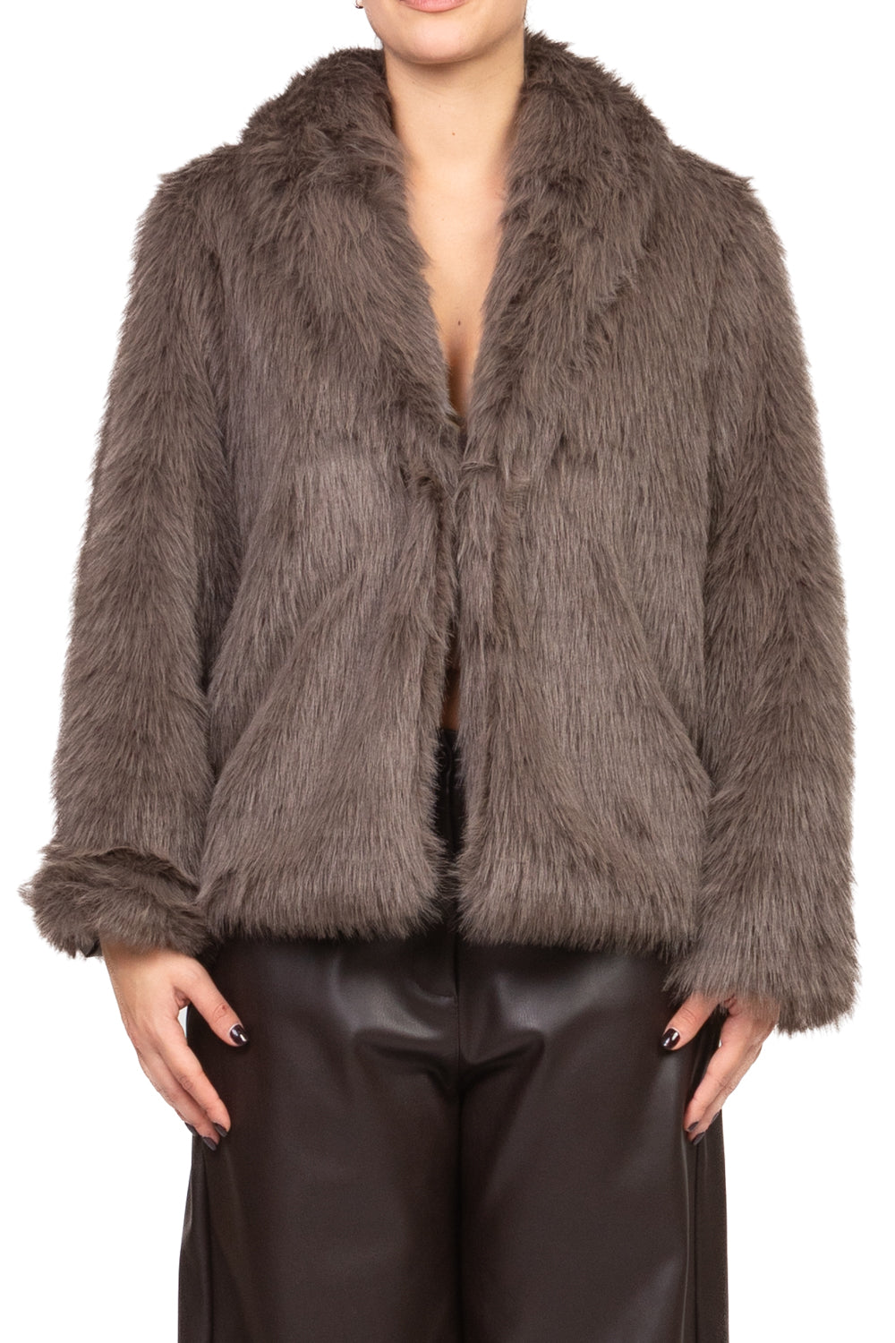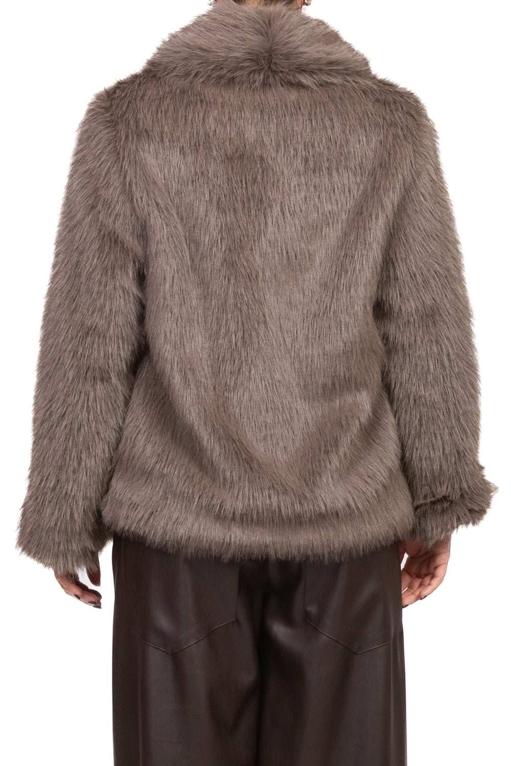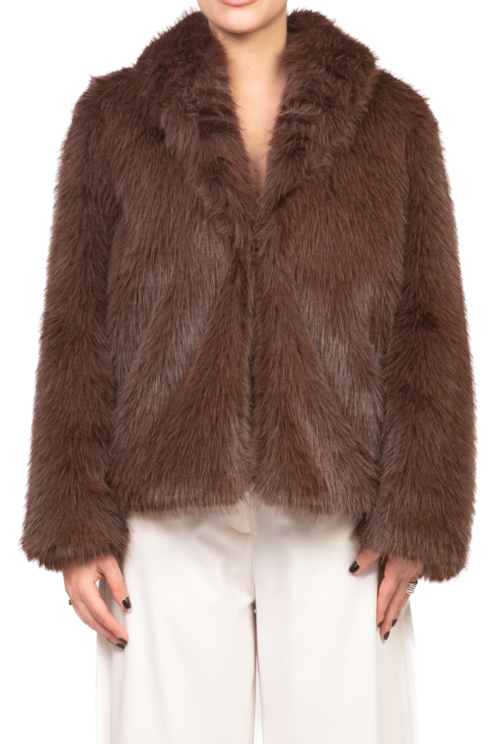 Giacca in eco pelliccia con interno foderato. Modello dotato di tasche a filo e chiusura frontale con gancio nascosto. Vestibilità confortevole e struttura morbida, ideale per la stagione fredda. Design pulito e raffinato.