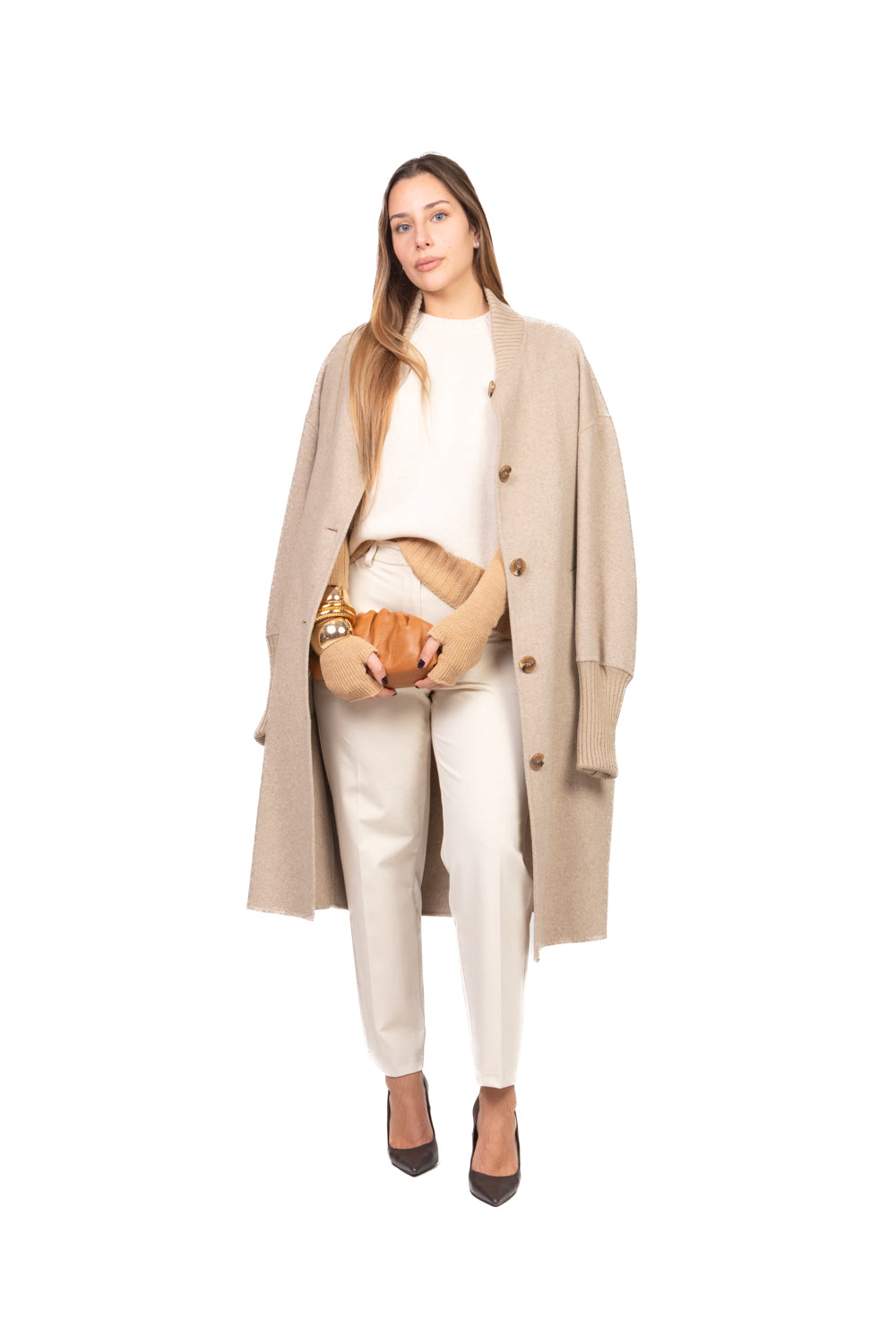 Gilet in maglia girocollo realizzato in filato misto lana e alpaca. Modello over con manicotti applicati e bordo a contrasto. Vestibilità ampia e confortevole, ideale per sovrapposizioni e look contemporanei. Finiture curate per un comfort ottimale.