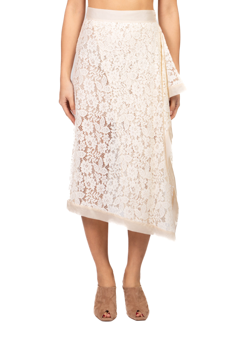 Gonna portafoglio realizzata in pizzo raffinato, completa di sottanina interna per maggiore comfort e copertura. Dotata di chiusura lampo laterale, unisce eleganza e praticità, perfetta per look sofisticati da giorno o da sera con un tocco femminile e contemporaneo.