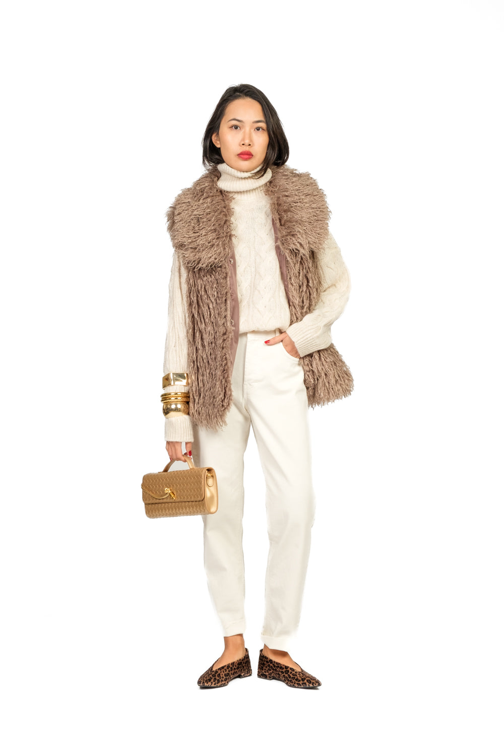 Maglia a collo alto realizzata in misto alpaca, caratterizzata da motivo a trecce. Morbida e avvolgente, ideale per look caldi, eleganti e dal tocco contemporaneo.