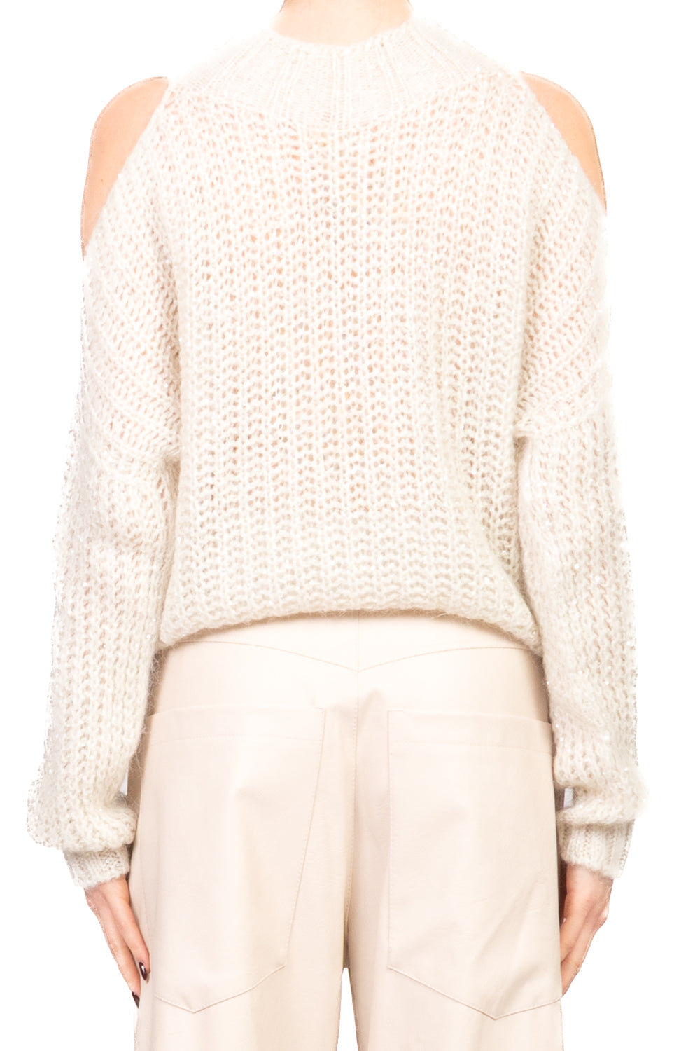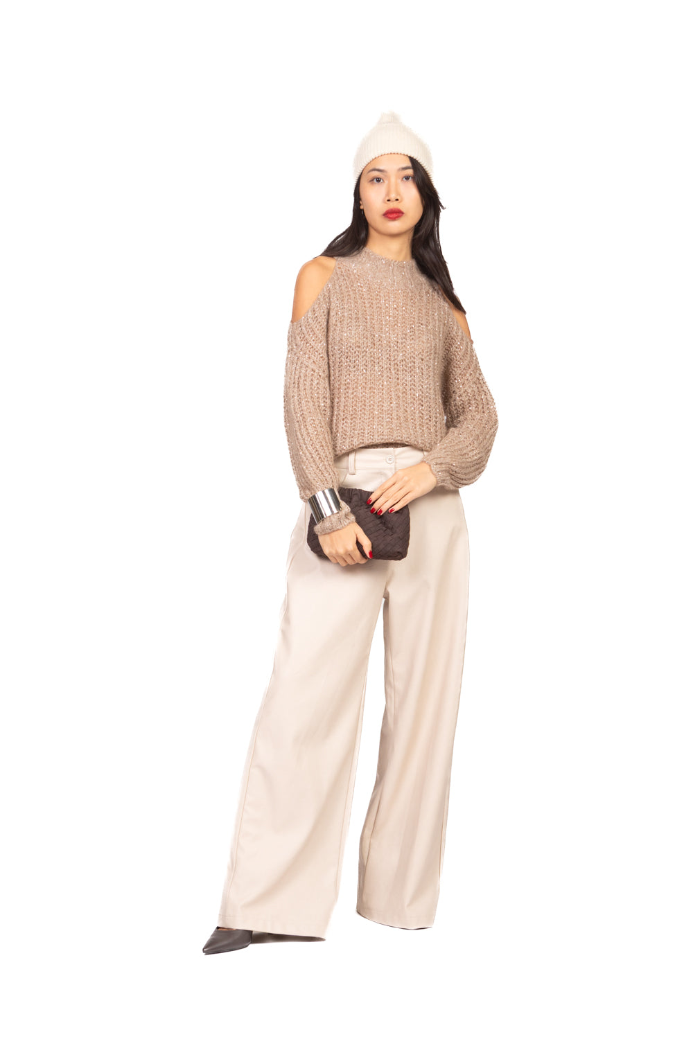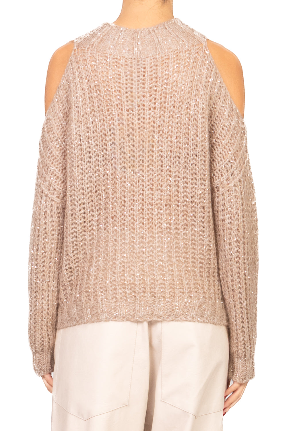 • Maglia a mezzo collo realizzata con micro paillettes, caratterizzata da dettagli cut out sulle spalle. Vestibilità comoda e design luminoso, ideale per look da sera sofisticati e di tendenza.