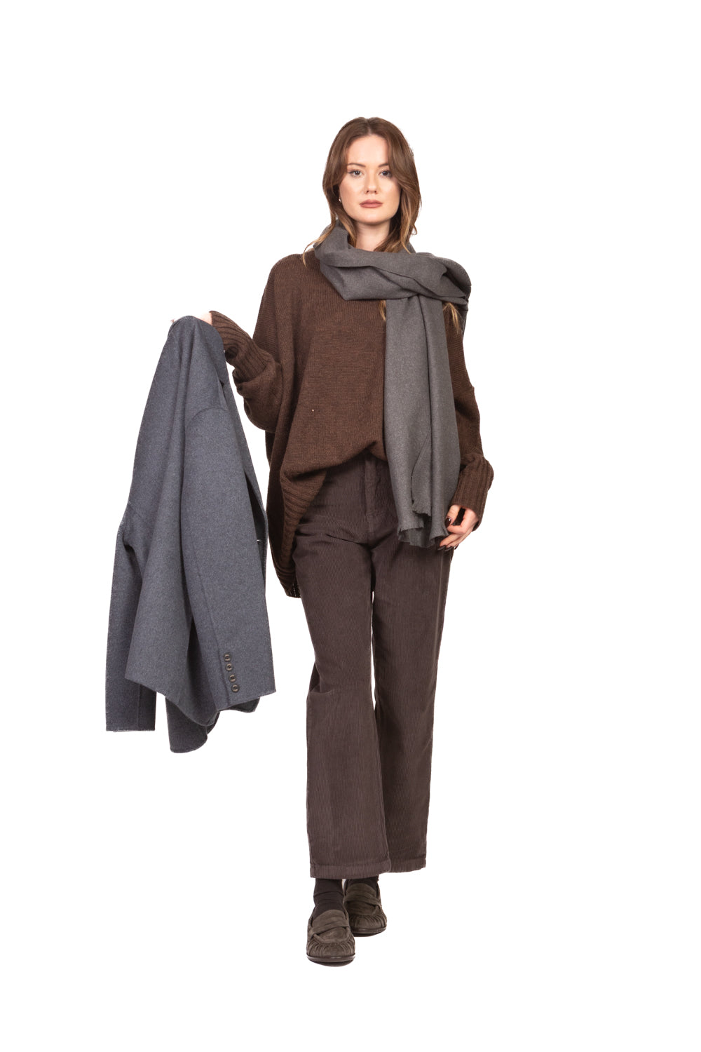 • Maglia over realizzata in misto alpaca e lana, caratterizzata da girocollo classico. Vestibilità ampia e confortevole, ideale per look caldi, eleganti e dal tocco contemporaneo.