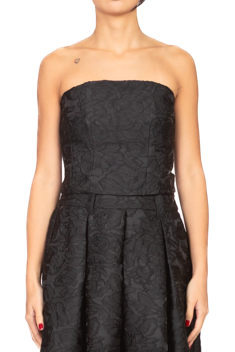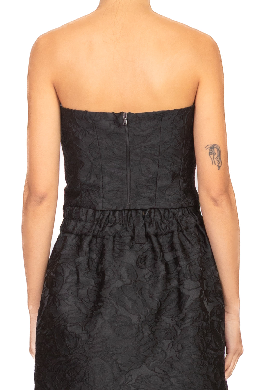 Top fascia a corpetto con ricamo floreale, caratterizzato da chiusura posteriore con lampo. Linea strutturata e femminile, perfetto per look eleganti e da occasione.