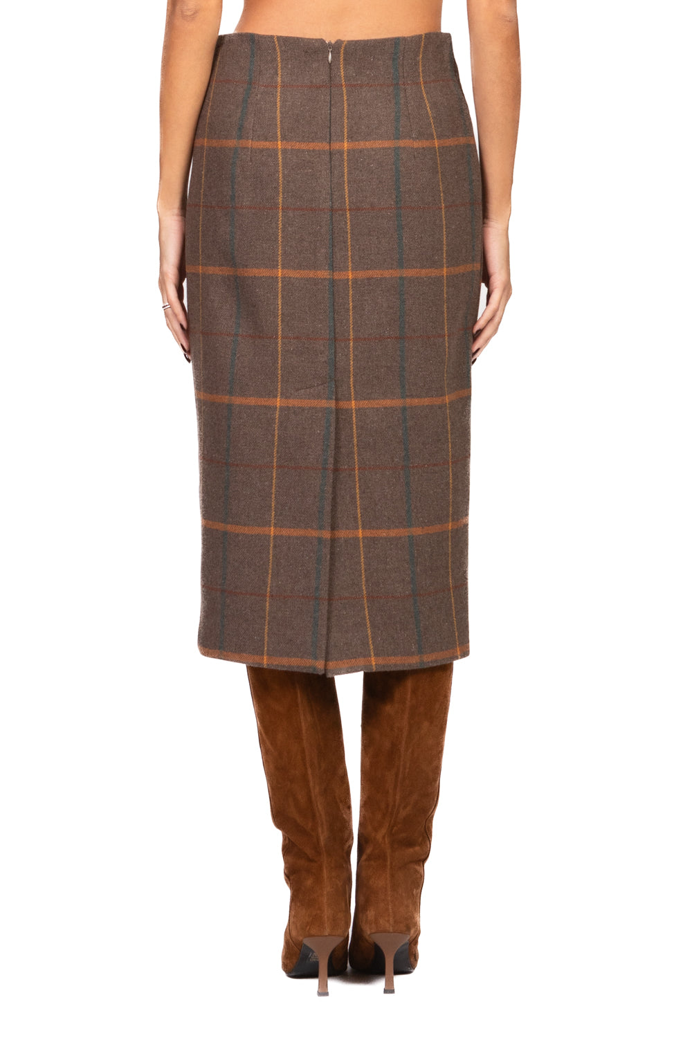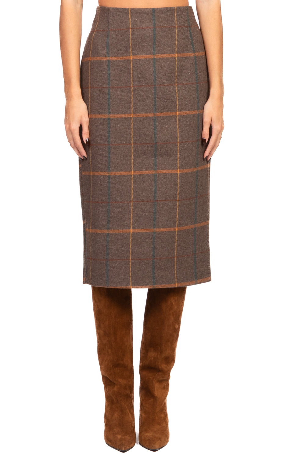 Gonna longuette in tessuto a quadri in misto lana, dalla linea aderente e strutturata. Dotata di chiusura posteriore con zip invisibile per un finish pulito e di uno spacco posteriore che garantisce comfort e libertà di movimento. Perfetta per look eleganti e contemporanei.