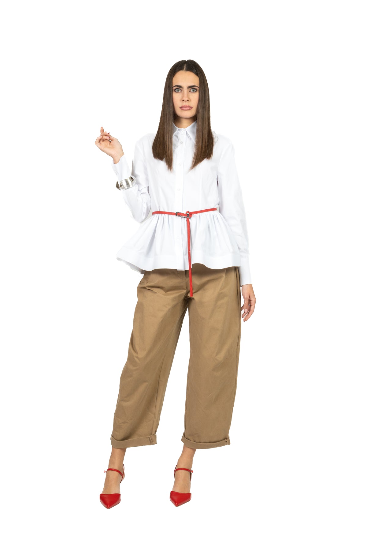 Camicia sfiancata in cotone, confortevole e versatile, con chiusura frontale a bottoni che valorizza la silhouette per un look pulito ed elegante.