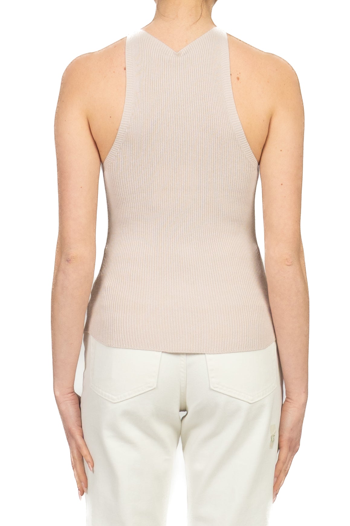 • Canotta slim fit a costine, con scollo americano, essenziale e versatile per look casual o stratificati con stile.