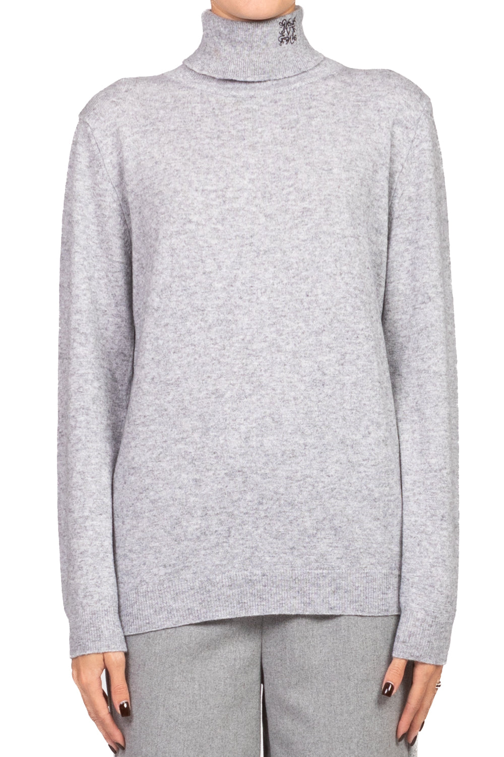 • Maglia slim a collo alto con ricamo logo sul colletto, leggera e morbida