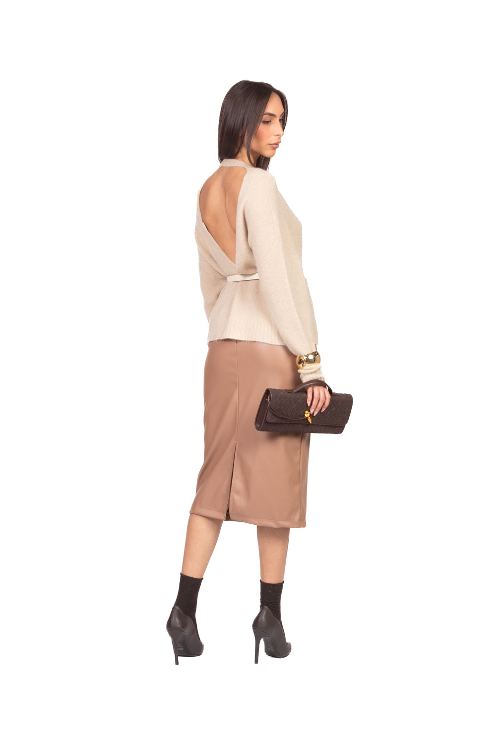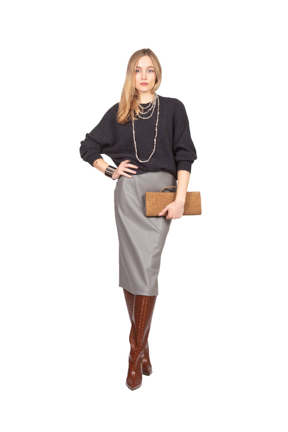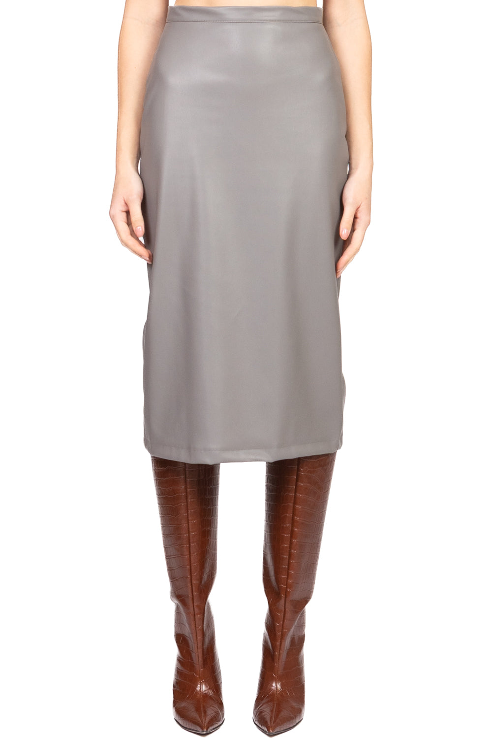 Dal carattere deciso e dallo stile contemporaneo, questa gonna in ecopelle è un capo versatile che aggiunge grinta a qualsiasi look. Realizzata in materiale effetto pelle, ha una finitura liscia e leggermente lucida che dona un tocco sofisticato. Il taglio può essere dritto, a tubino o leggermente svasato, ideale per valorizzare la silhouette. Perfetta da abbinare a camicie, maglioni oversize o blazer per un outfit urban chic, è il capo passe-partout per chi ama mixare femminilità e attitudine rock.