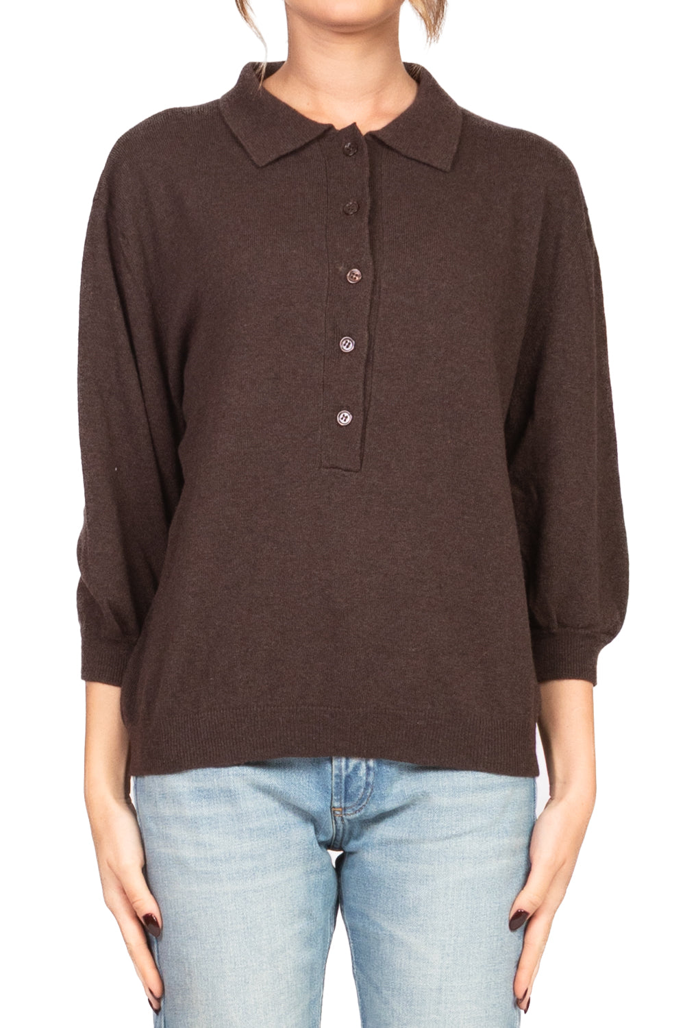 • Maglia polo reinterpretata in chiave femminile, con maniche a palloncino che donano volume e un tocco romantico al classico modello. Il collo a polo e i bottoni frontali mantengono l’essenza sporty-chic, mentre il dettaglio delle maniche aggiunge carattere e modernità.