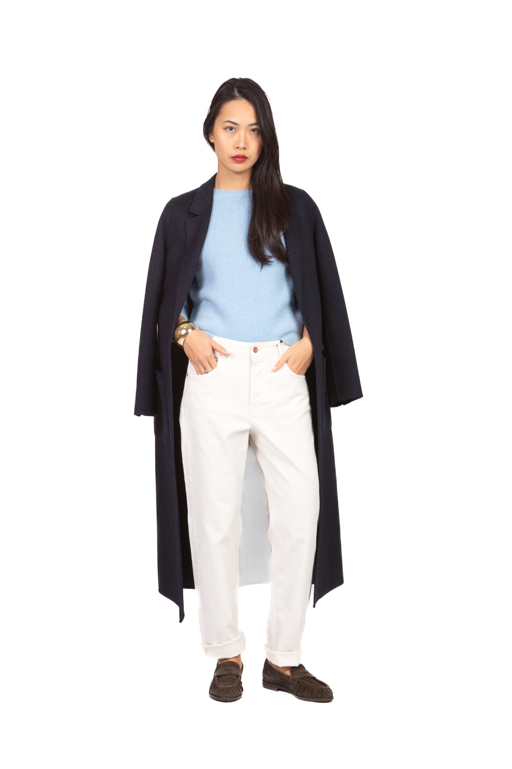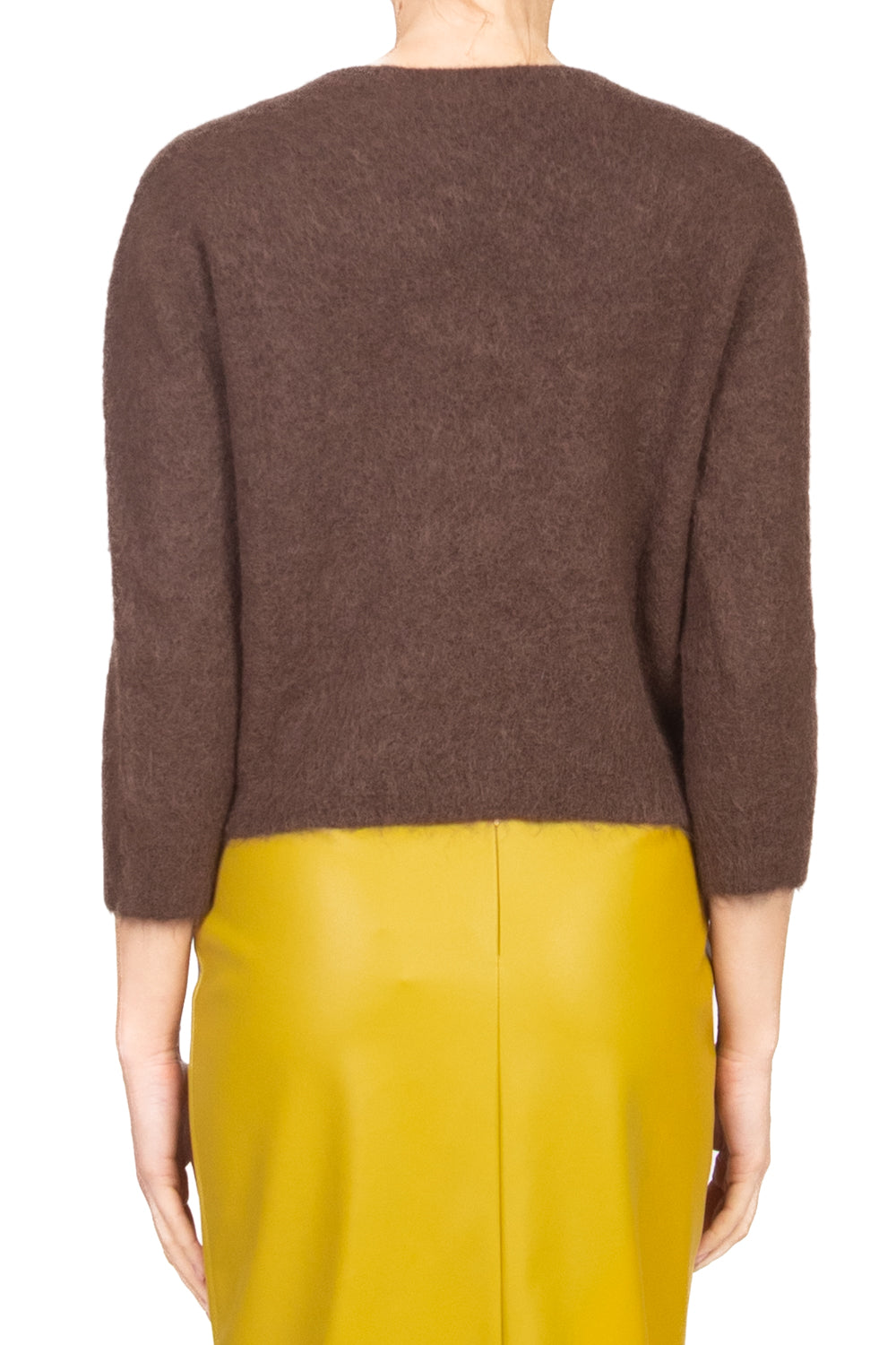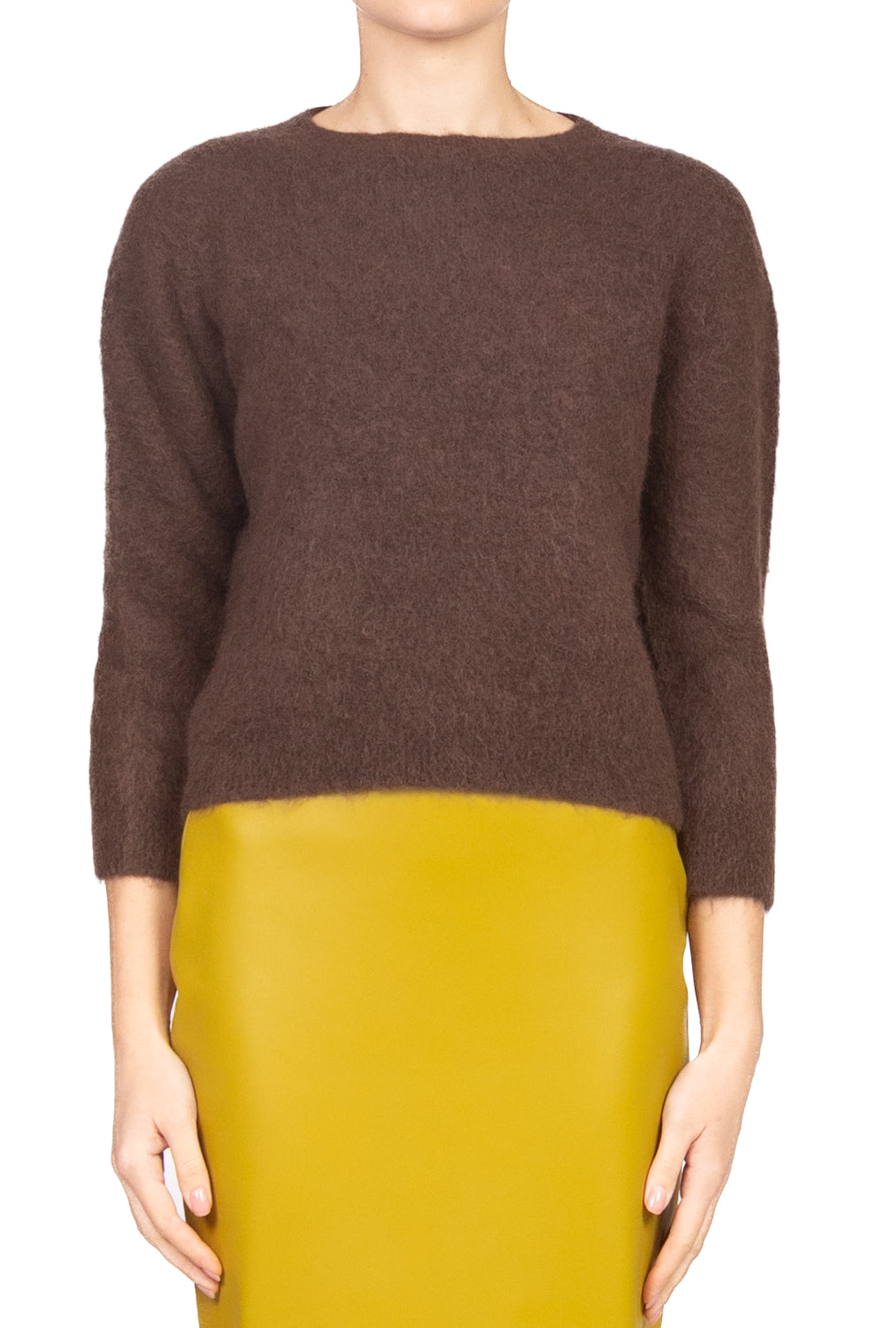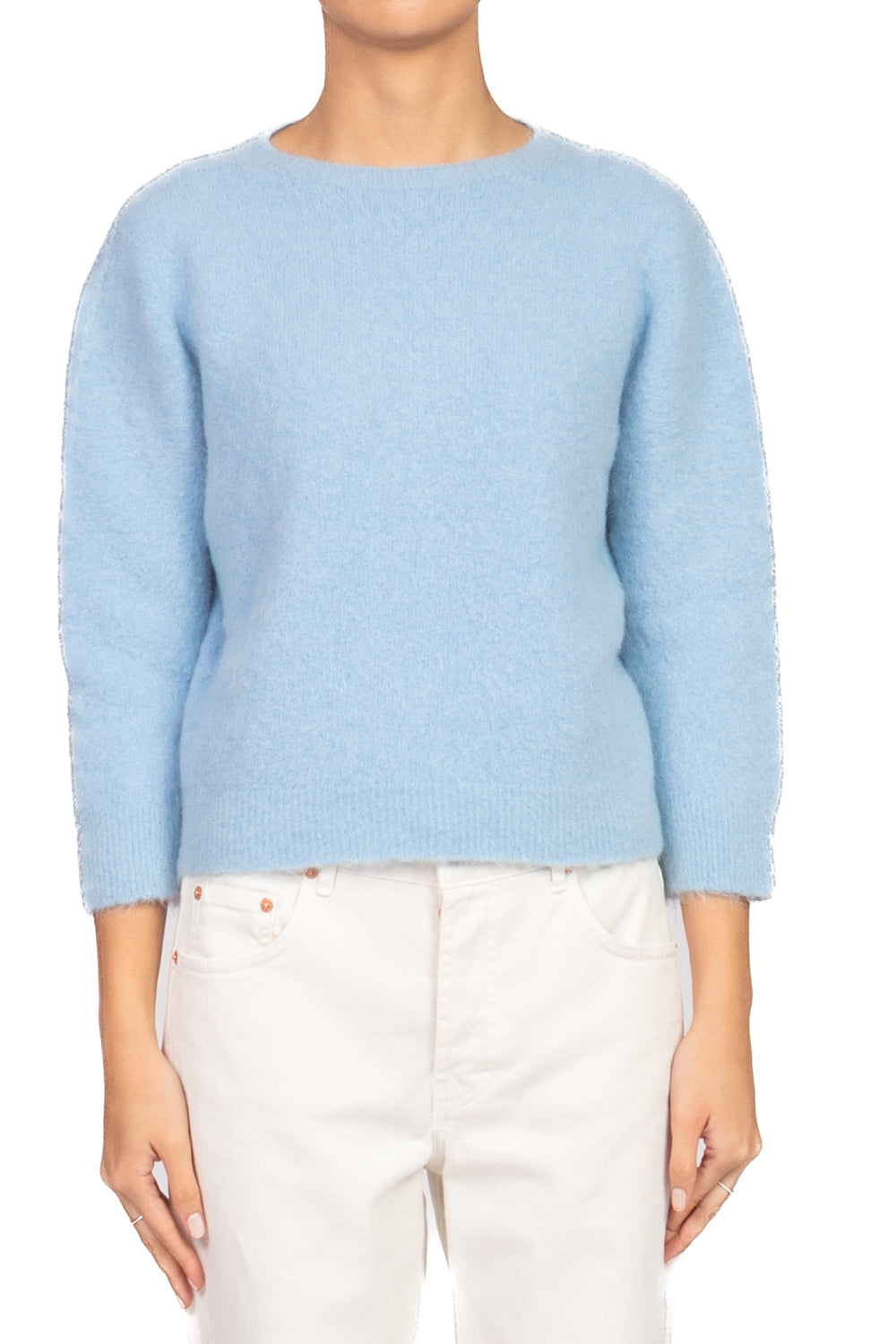 Questa maglia girocollo in mohair di alpaca è caratterizzata da un fit leggermente slim che valorizza la figura senza rinunciare al comfort. Le maniche 3/4 aggiungono un tocco contemporaneo, mentre la texture soffice e leggera la rende perfetta per ogni stagione. Da indossare sola o in layering, è un capo chiave per look puliti e raffinati.
