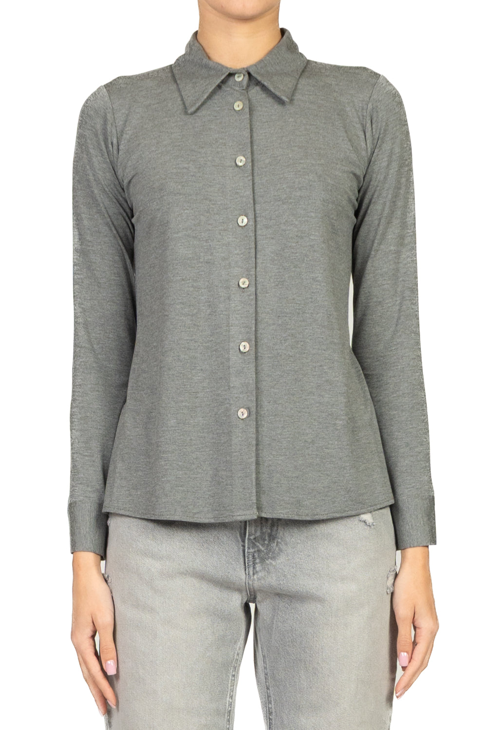 Questa camicia con taglio slim è realizzata in morbido jersey, un tessuto elasticizzato che garantisce comfort e libertà di movimento pur mantenendo un aspetto curato e aderente alla figura. Ideale per un look moderno e versatile, unisce l’eleganza della camicia classica alla praticità di una t-shirt, rendendola perfetta sia per l’ufficio che per il tempo libero.