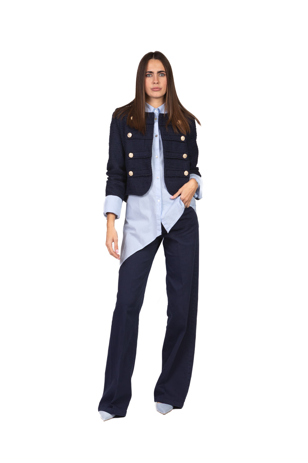 Questa camicia asimmetrica è un capo dal design moderno e audace, ideale per chi cerca un look unico e creativo. Il taglio asimmetrico, che può essere più lungo su un lato e più corto sull'altro, aggiunge un tocco di dinamismo alla silhouette, rendendola perfetta per un outfit contemporaneo. Realizzata in tessuti morbidi e leggeri, offre una vestibilità comoda e versatile, ideale per essere abbinata a jeans, pantaloni o gonne. Perfetta per un look casual-chic o per un'uscita serale, questa camicia si distingue per la sua eleganza non convenzionale.