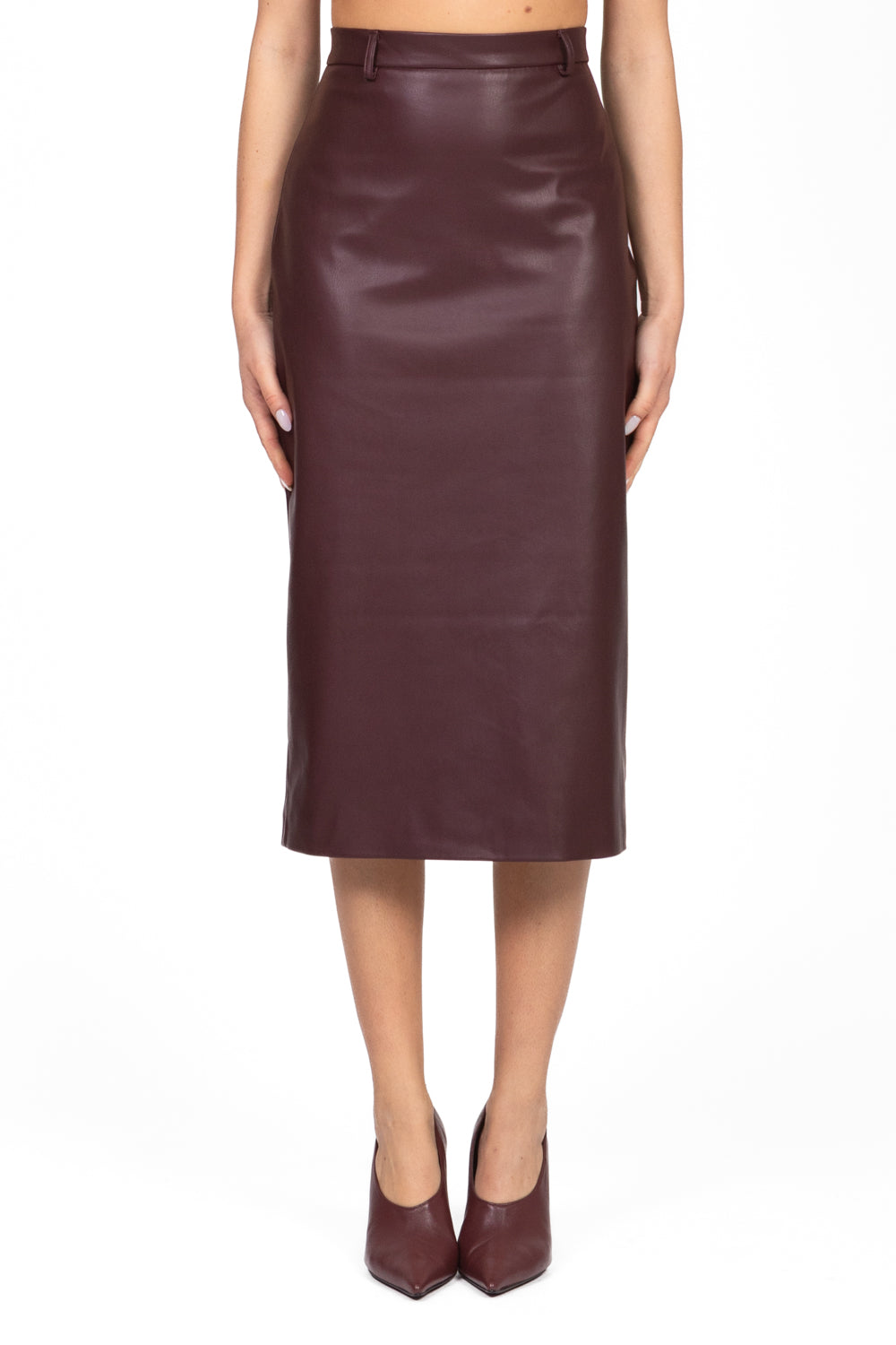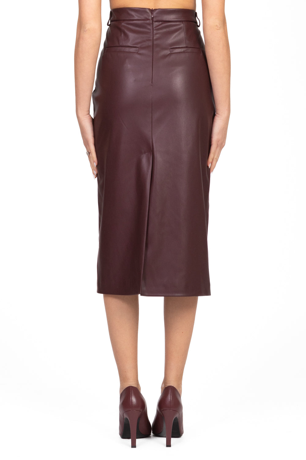 Gonna longuette in ecopelle dal taglio pulito e femminile, con lunghezza al polpaccio e linea dritta. Il tessuto effetto pelle dona carattere al look, mantenendo uno stile sofisticato. Perfetta con stivali, tacchi o sneakers per passare dal giorno alla sera con facilità.