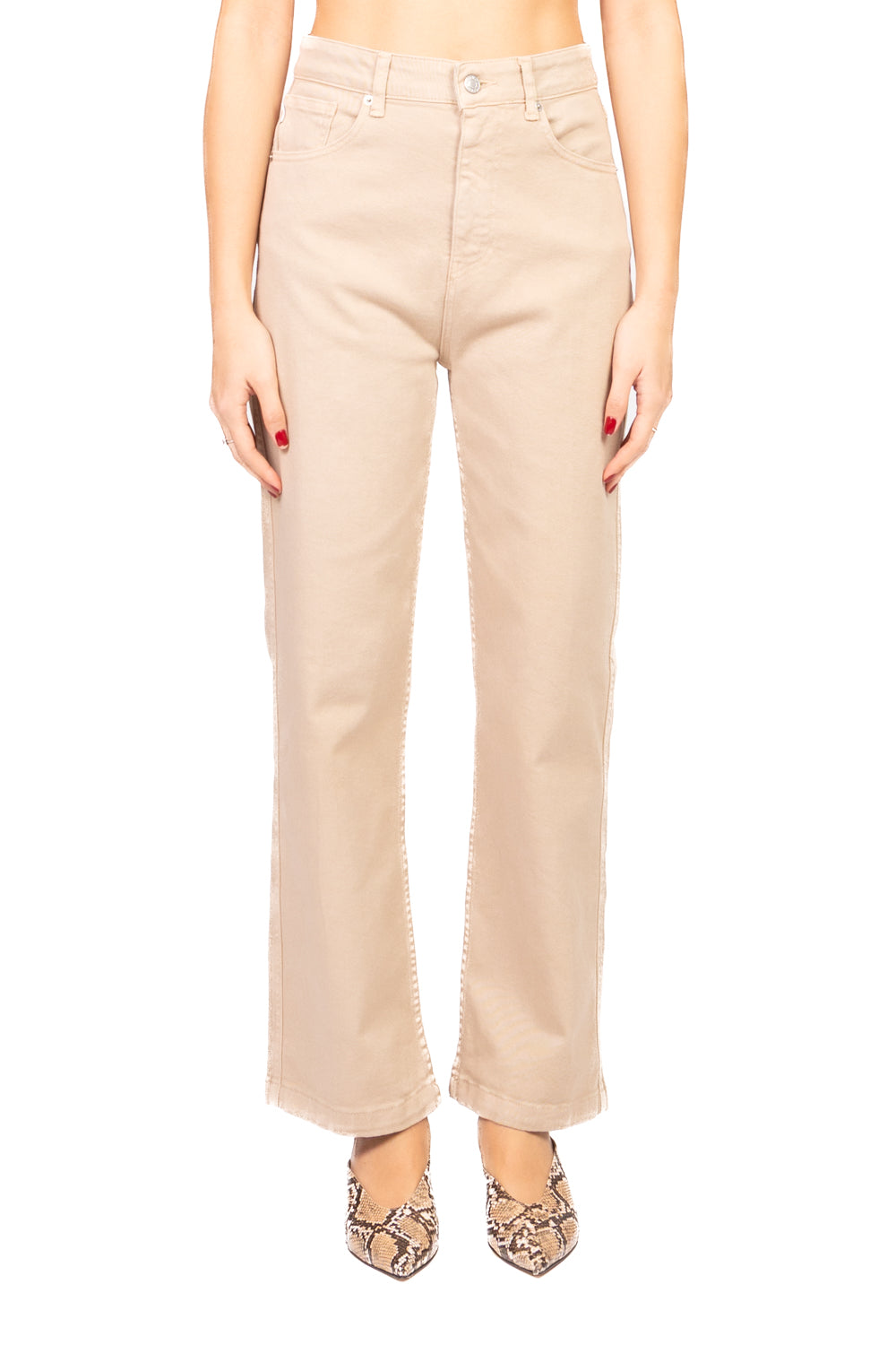 Jeans modello crop con gamba dritta e vestibilità regolare. Struttura classica a 5 tasche, chiusura frontale con bottone e zip. Lunghezza alla caviglia per un taglio moderno e versatile. Ideale per look casual e contemporanei