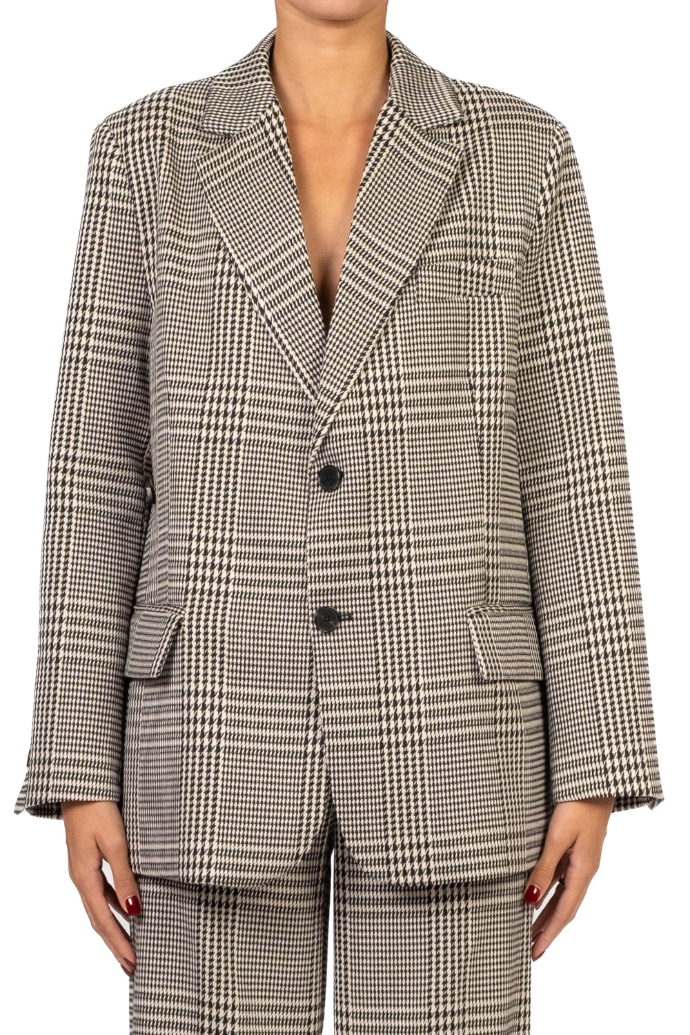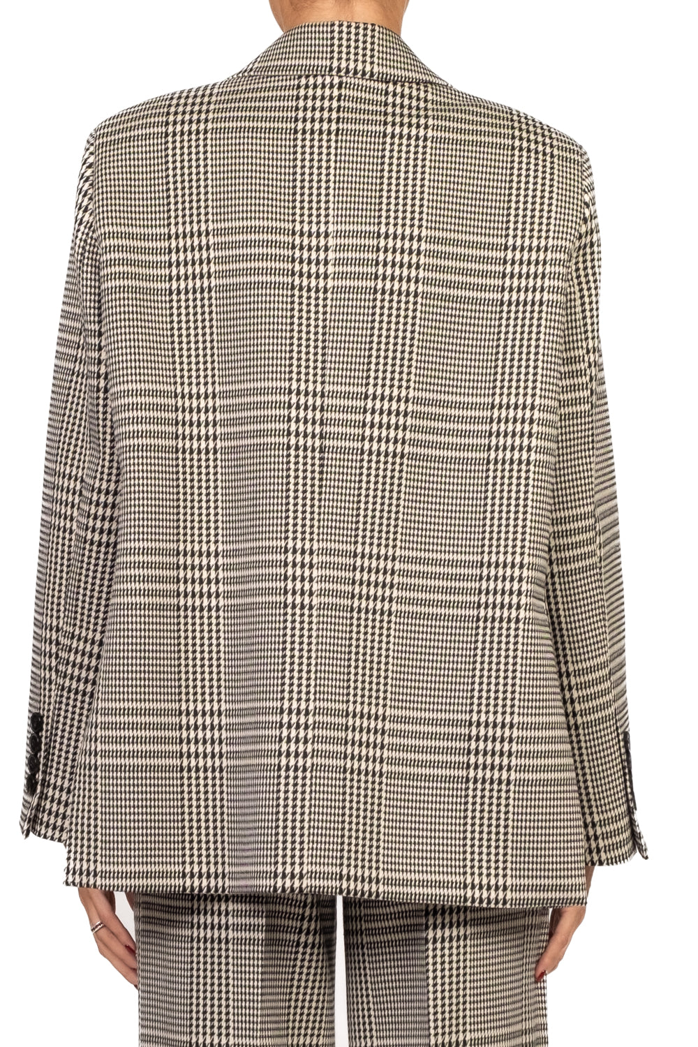 Eleganza senza tempo per questa giacca over in fantasia pied de poule, completamente foderata per massimo comfort. Il modello presenta chiusura a due bottoni, tasche frontali funzionali e due spacchetti posteriori che garantiscono libertà di movimento e stile. Perfetta per arricchire look formali o casual chic con un tocco sofisticato.
