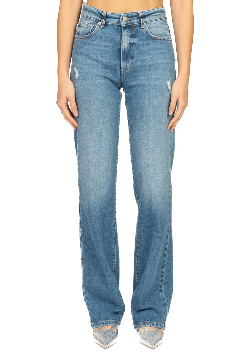 Jeans a gamba dritta dalla vestibilità equilibrata, non troppo ampia, con vita media/bassa che dona un fit naturale e confortevole. Realizzato in denim non elasticizzato, mantiene una struttura pulita e un look autentico. Il classico modello a cinque tasche con chiusura a lampo e bottone lo rende un capo essenziale e versatile, ideale per look quotidiani.