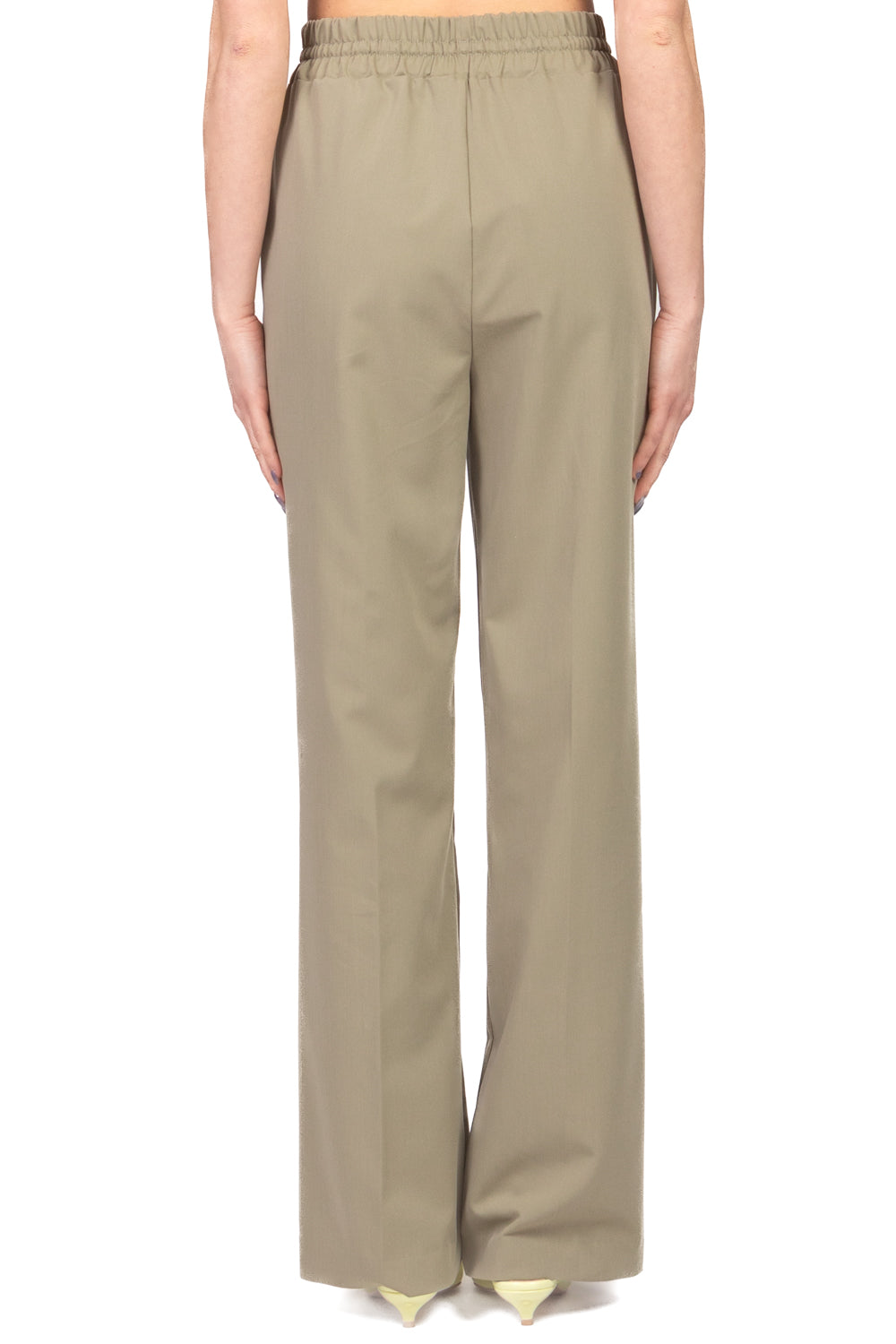 Pantalone palazzo dal taglio ampio e fluido, caratterizzato da coulisse in vita che garantisce comfort e vestibilità regolabile. Le pinces frontali valorizzano la linea donando struttura ed eleganza, mentre le tasche a filo completano il design con un dettaglio discreto e funzionale. Perfetto per look sofisticati ma rilassati.