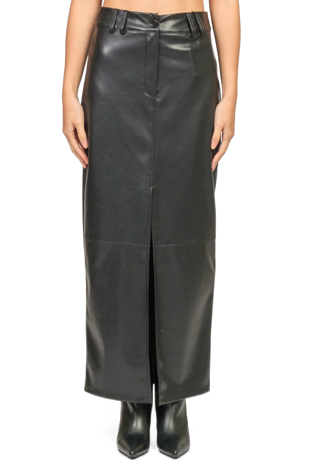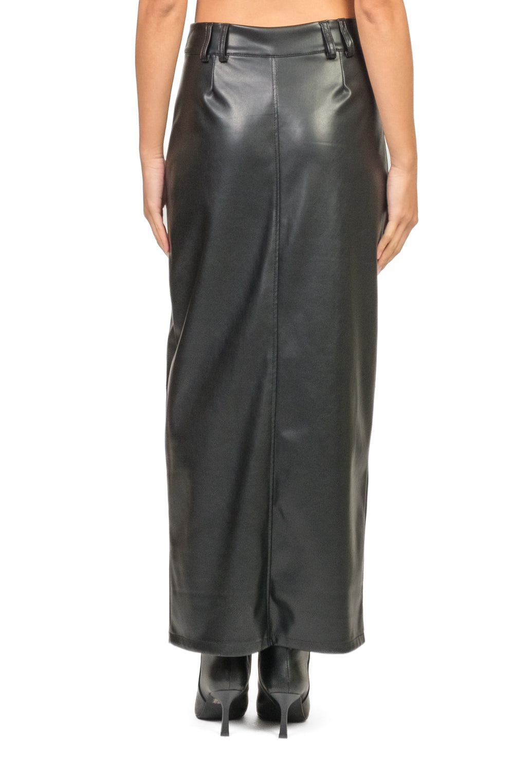 Un capo audace e sofisticato, perfetto per look decisi ma raffinati. Questa gonna tubino in ecopelle avvolge la silhouette con una linea aderente e slanciata, mentre lo spacco frontale dona movimento e un tocco di sensualità.