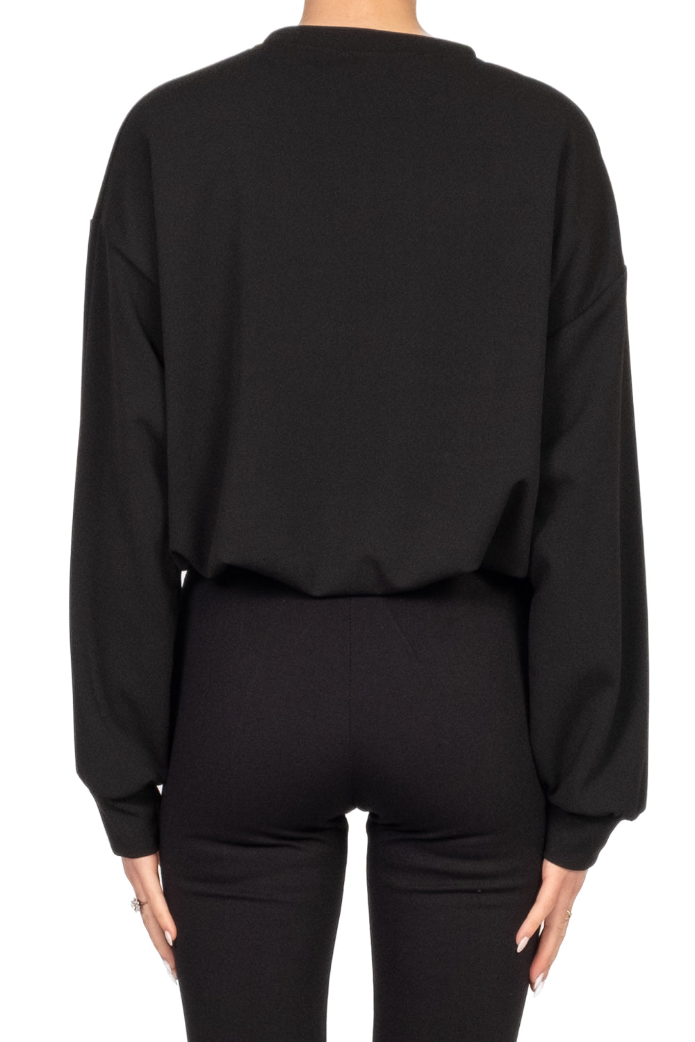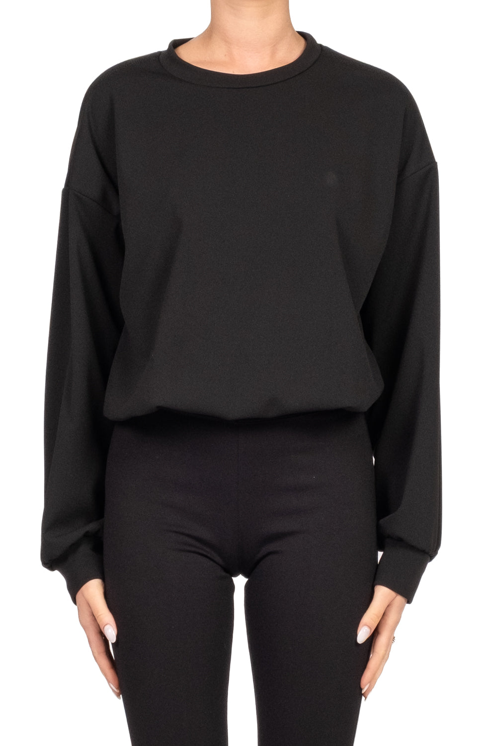 Felpa crop in tessuto tecnico con elastico in vita che crea un moderno effetto palloncino. Design corto e voluminoso, perfetto per un look sportivo e di tendenza.