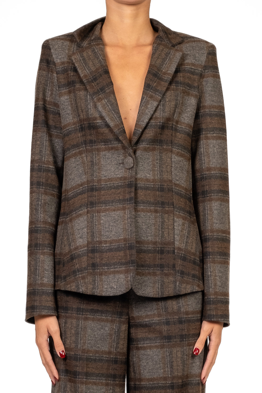 • Giacca dal taglio slim con fantasia check, spalline imbottite per una struttura definita, chiusura con un bottone e spacco posteriore per maggiore comfort e stile. Perfetta per un look elegante e moderno.