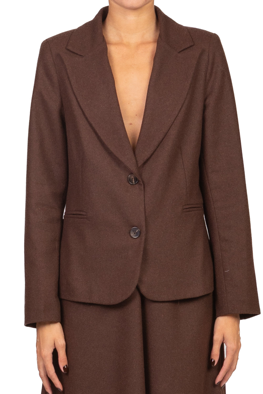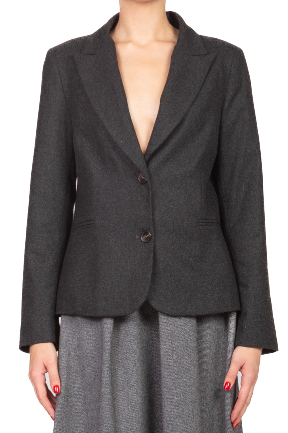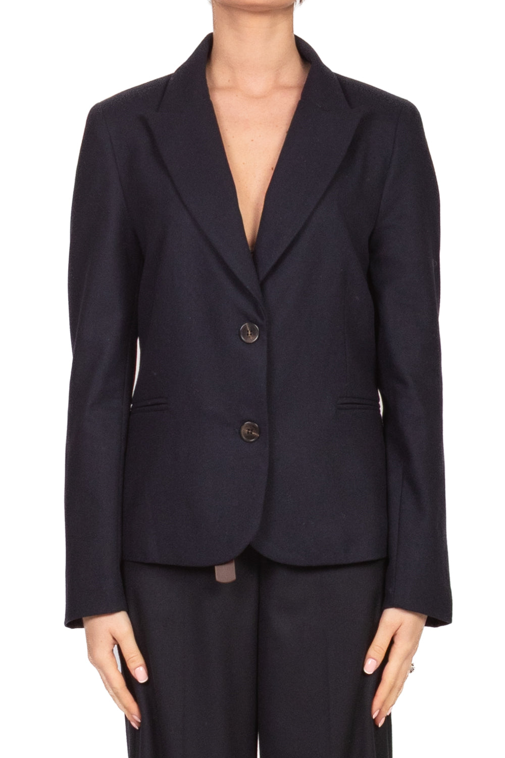 • Giacca corta leggermente sfiancata con spalline imbottite e fodera interna, chiusura a due bottoni. Elegante e femminile, perfetta per un look curato e contemporaneo.