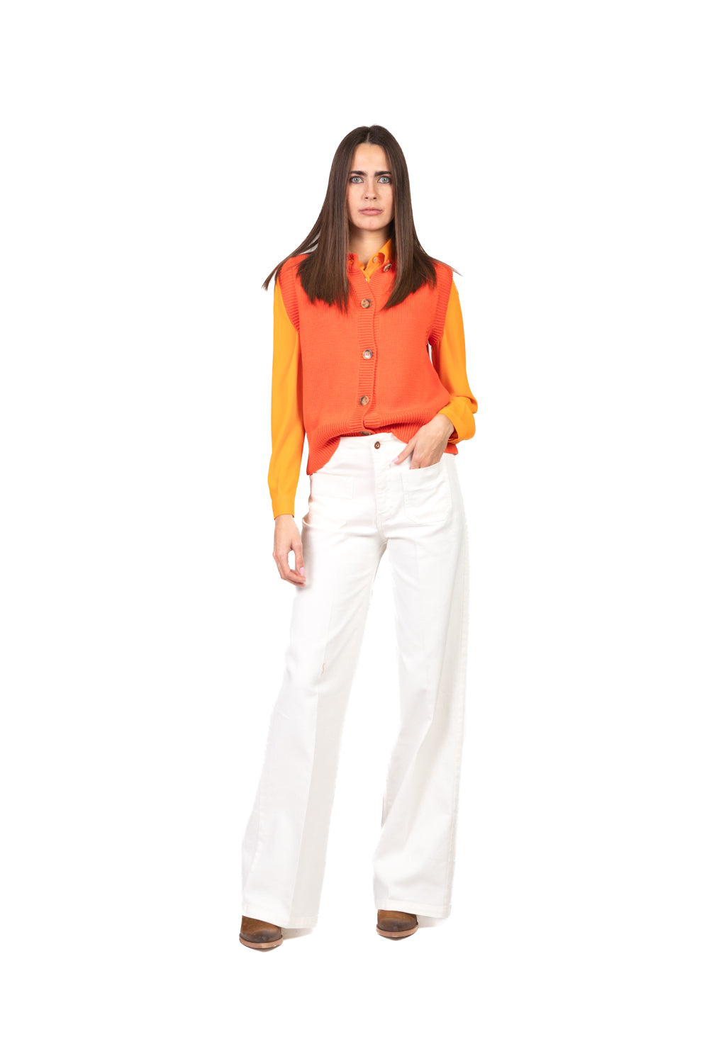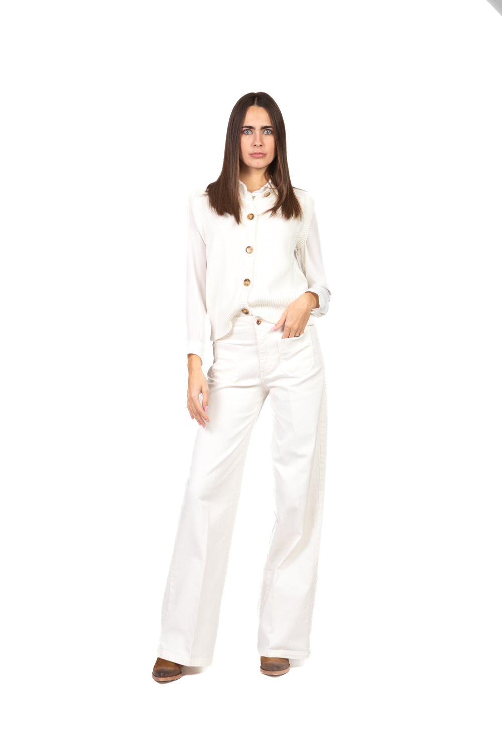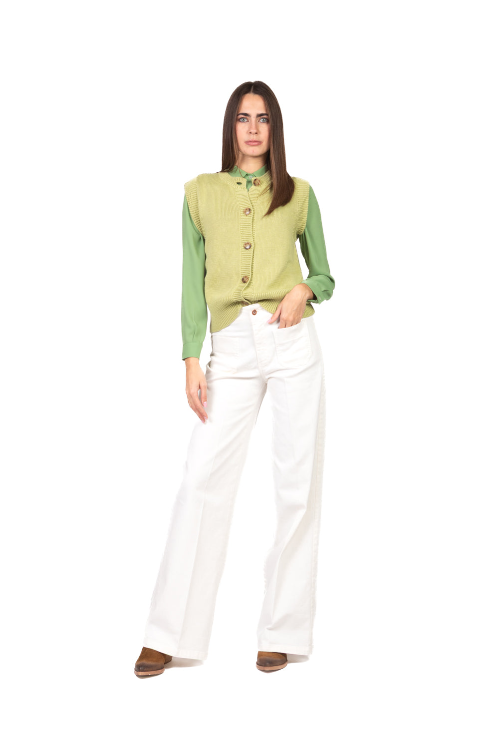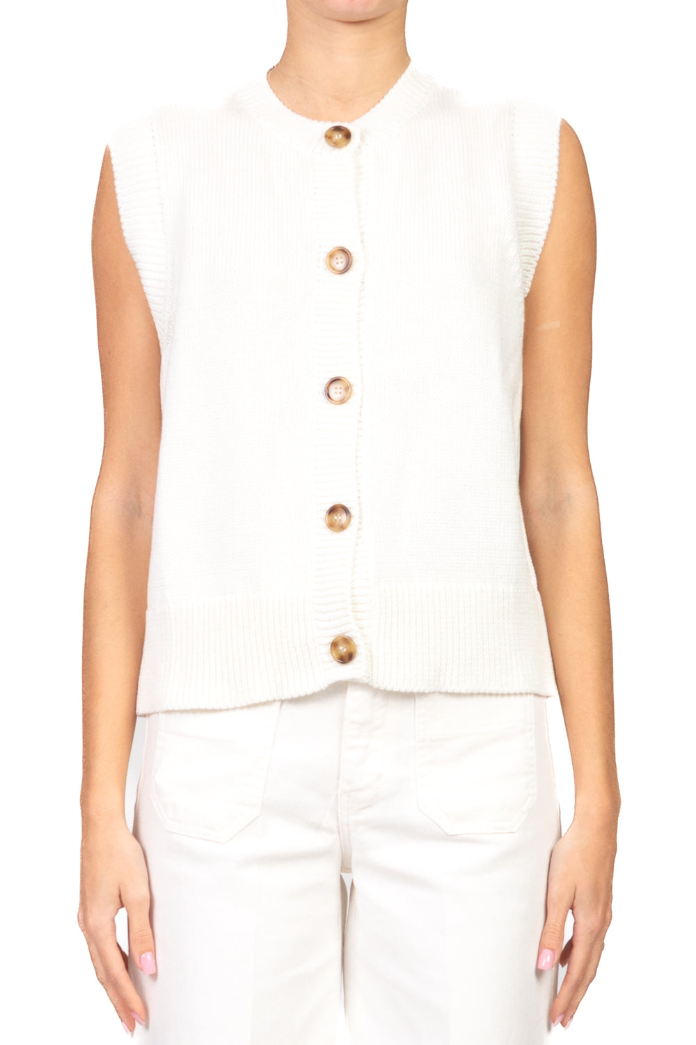 Linee pulite e stile essenziale per un capo versatile e intramontabile. Il design girocollo dona un tocco minimal, mentre la chiusura con bottoni aggiunge praticità e carattere. Perfetto da indossare da solo o sopra una camicia per un look curato e contemporaneo.