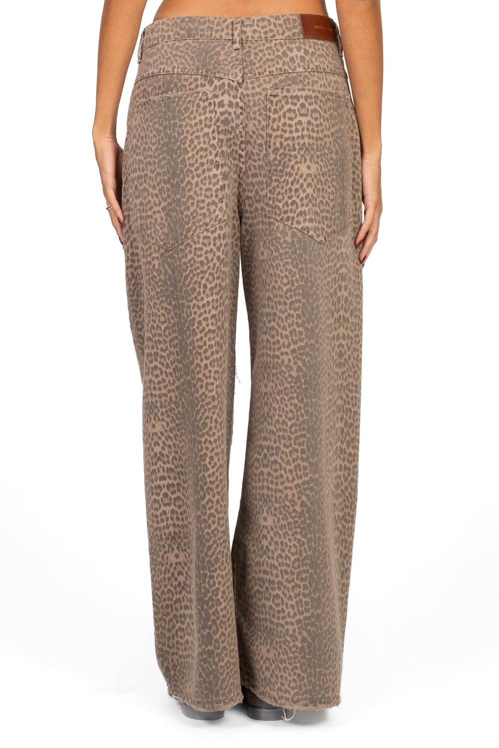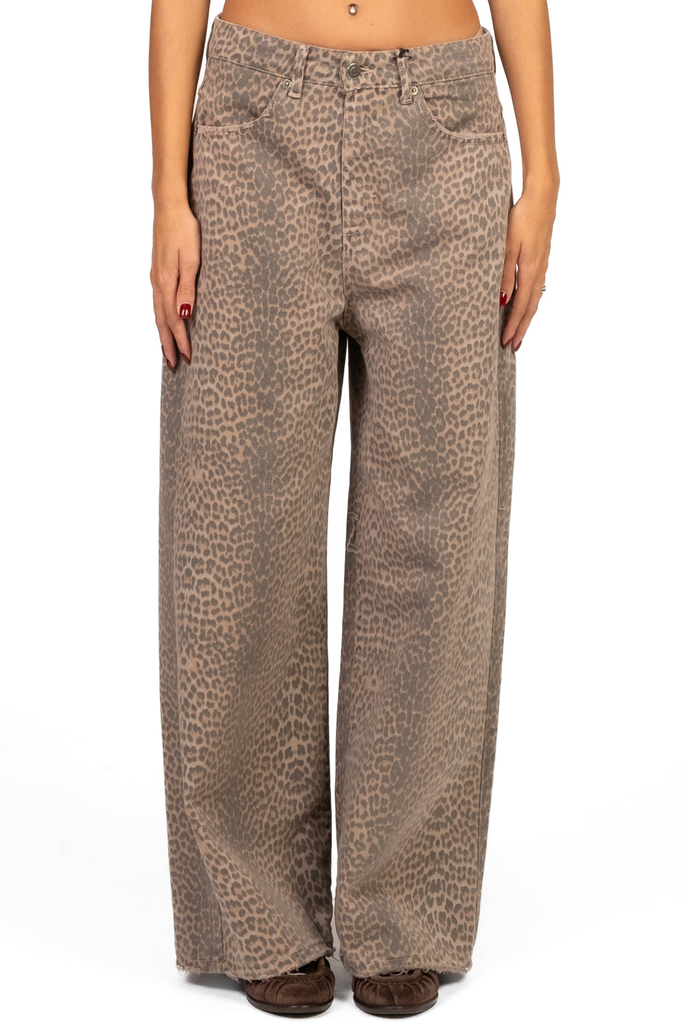 Jeans palazzo in denim stampato effetto maculato, dal carattere deciso e originale. Dotati di 4 tasche e chiusura con zip e bottone, sono perfetti per un look audace e contemporaneo.