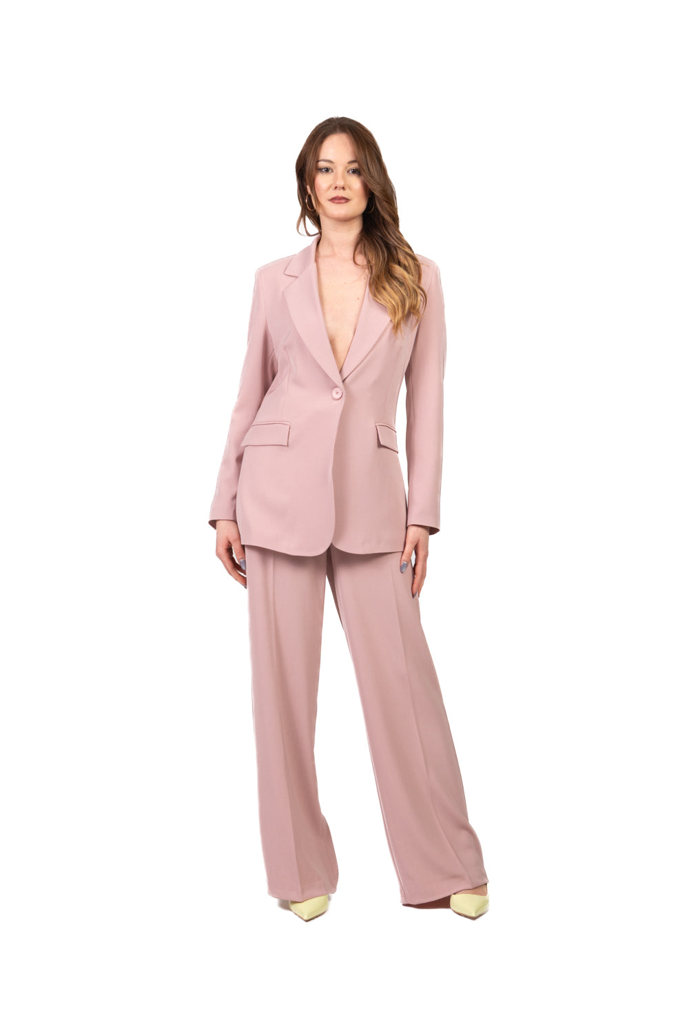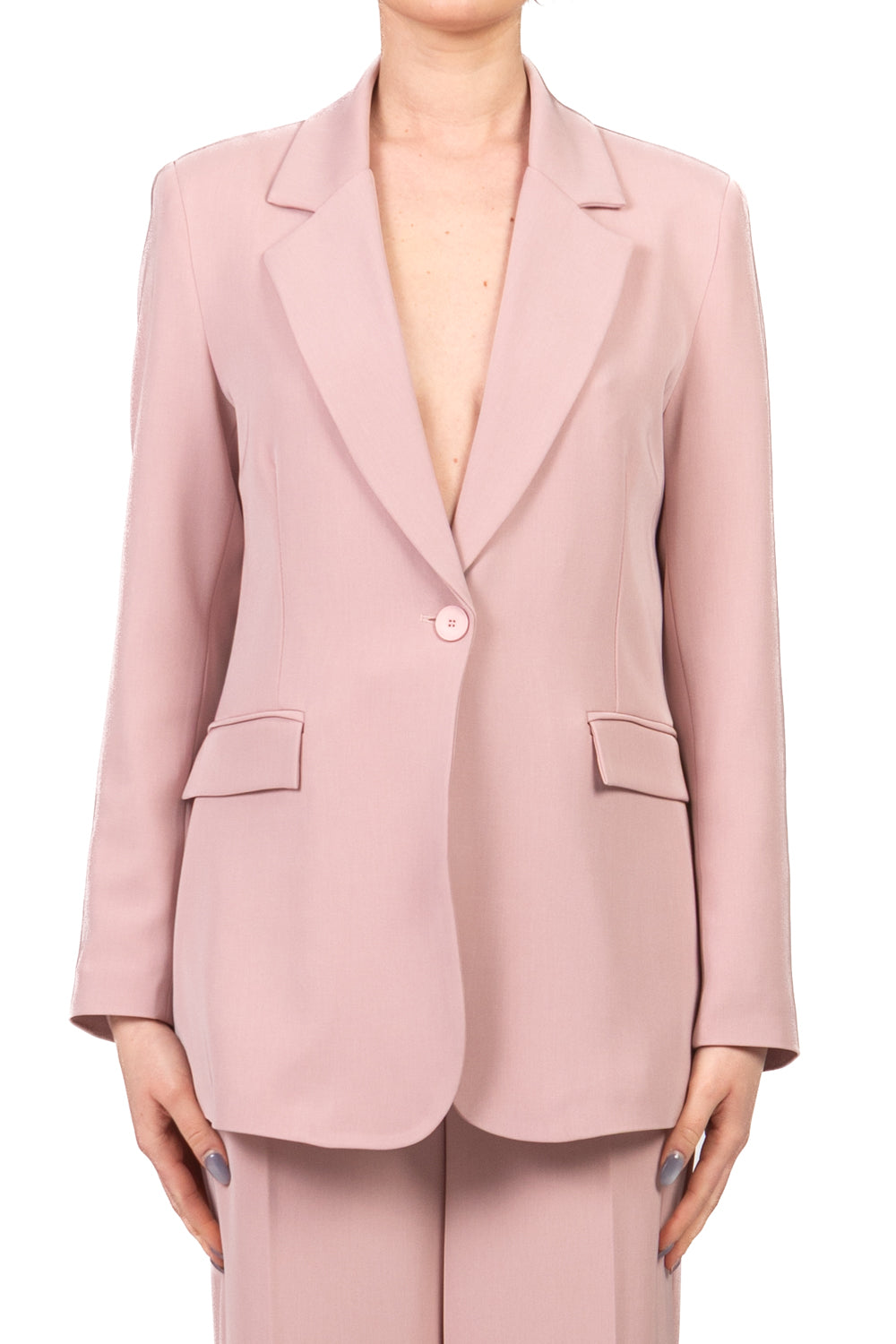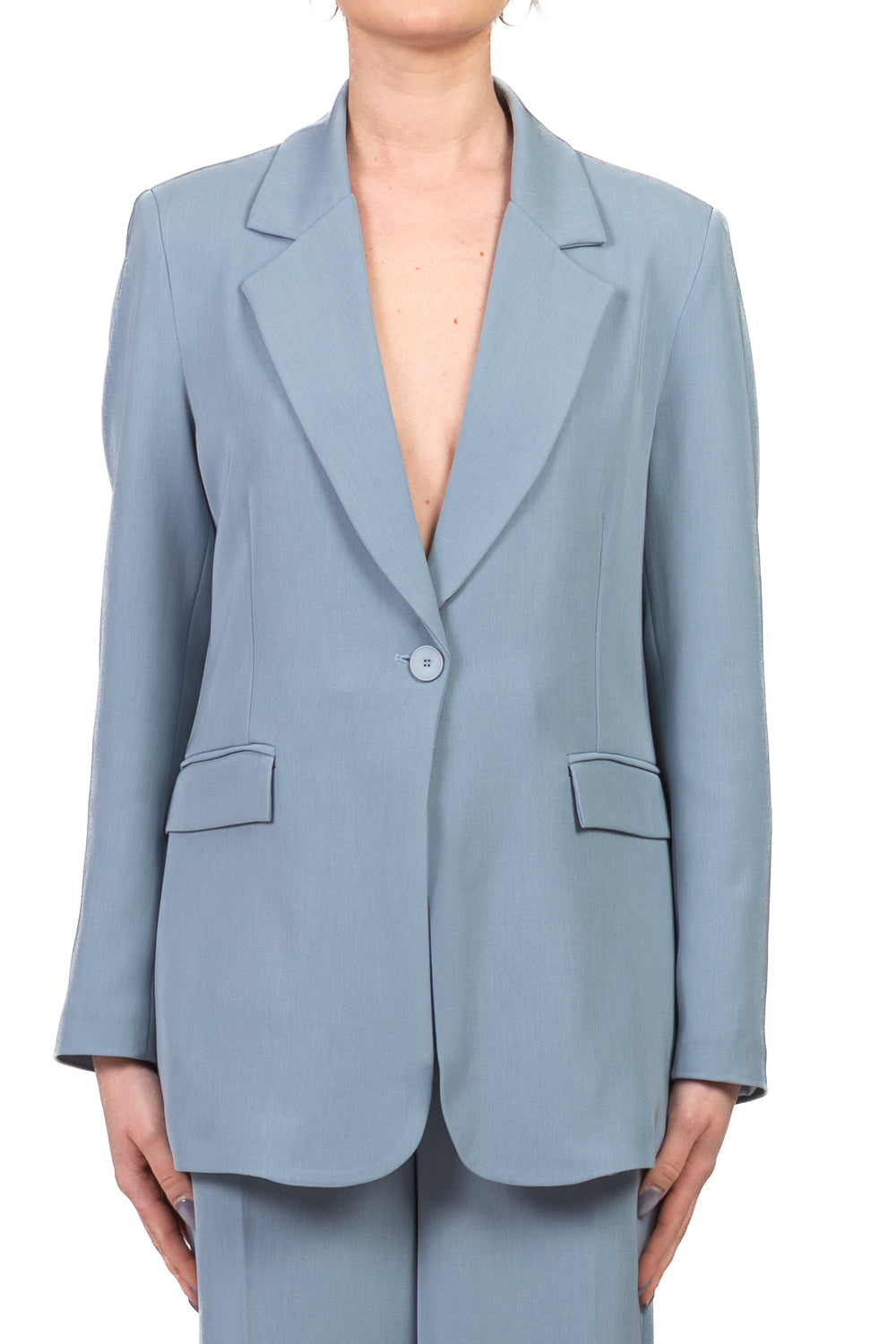 Giacca elegante dal taglio pulito, con chiusura frontale a un solo bottone che slancia la silhouette. Versatile e sofisticata, ideale da abbinare a pantaloni, gonne o jeans per look formali o casual chic.