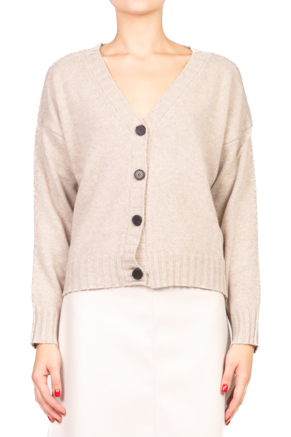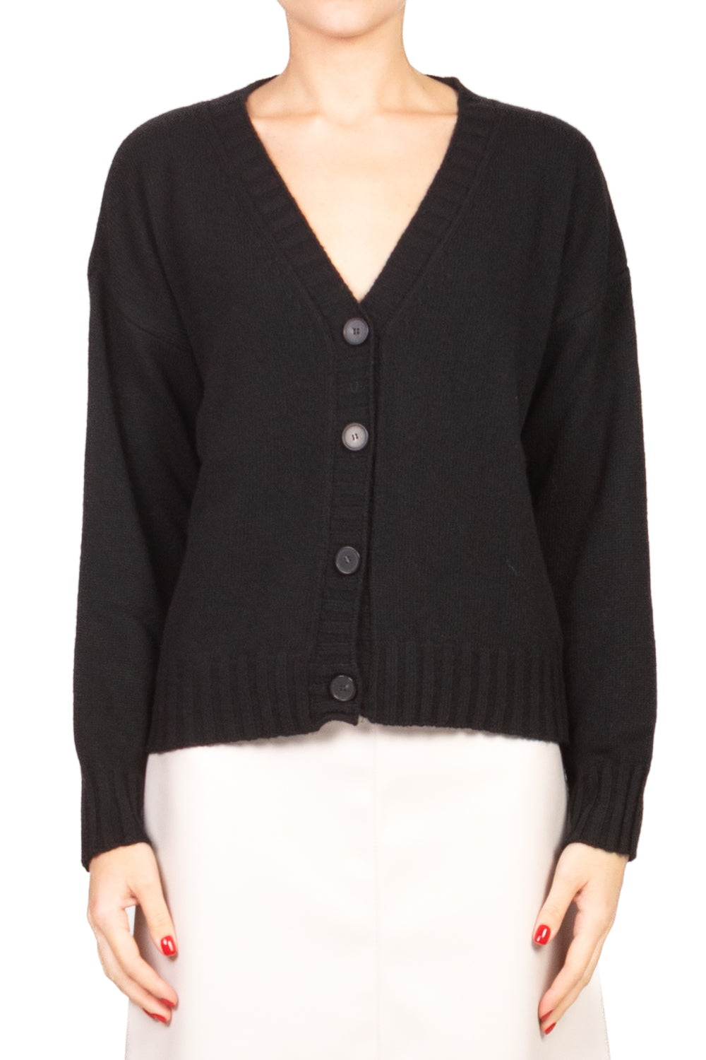 Un capo versatile e raffinato, caratterizzato da scollo a V classico, polsini e profilo a coste che aggiungono struttura e dettaglio. Perfetto per look casual o stratificati con un tocco elegante.