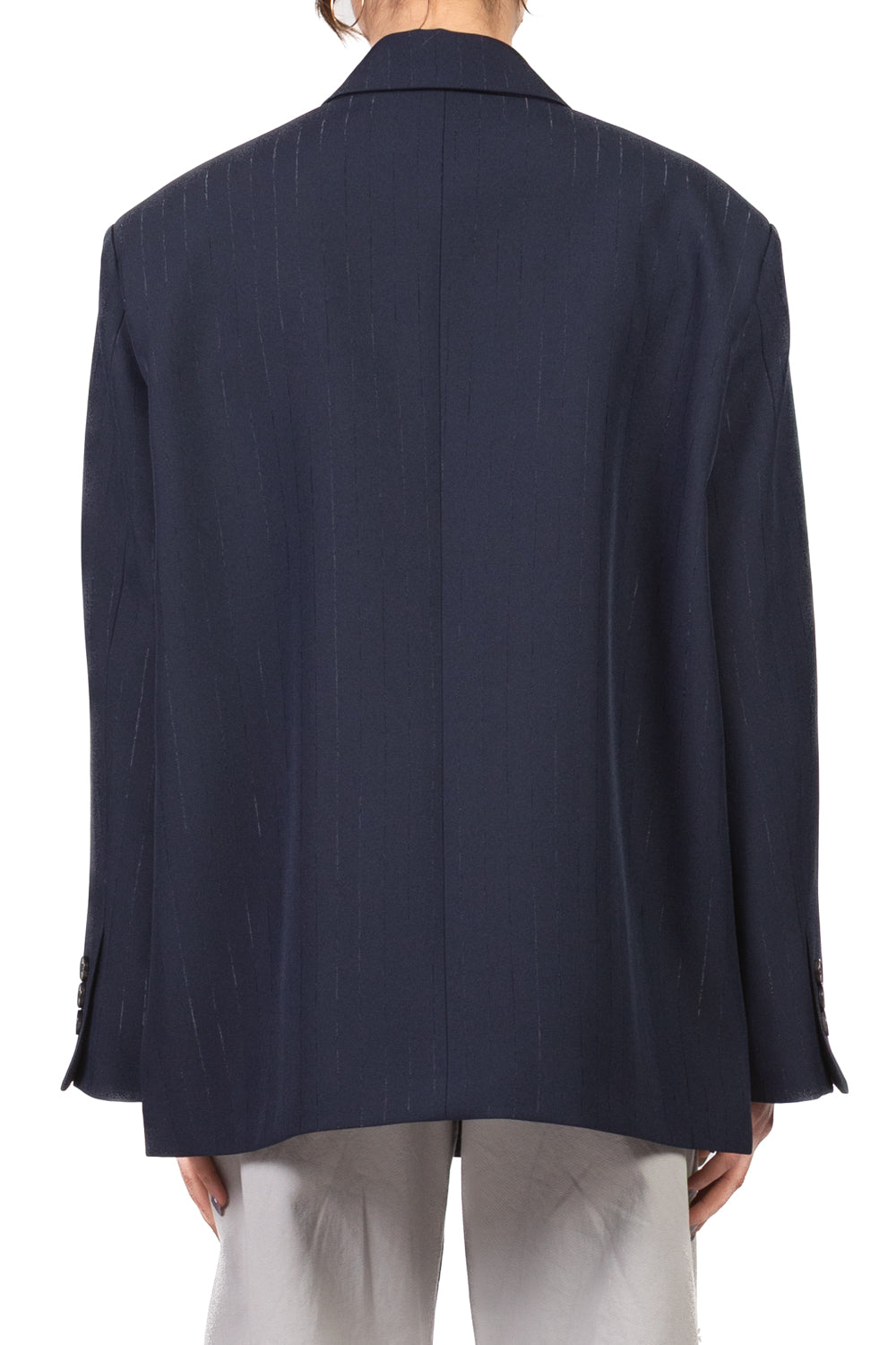 Giacca over dal design contemporaneo e deciso, caratterizzata da chiusura doppia e linea asimmetrica che dona movimento al look. Le spalle leggermente imbottite assicurano struttura, mentre tasche e taschino frontali uniscono praticità e stile. Gli spacchetti laterali completano il capo con un tocco di originalità, perfetto per outfit moderni e sofisticati.