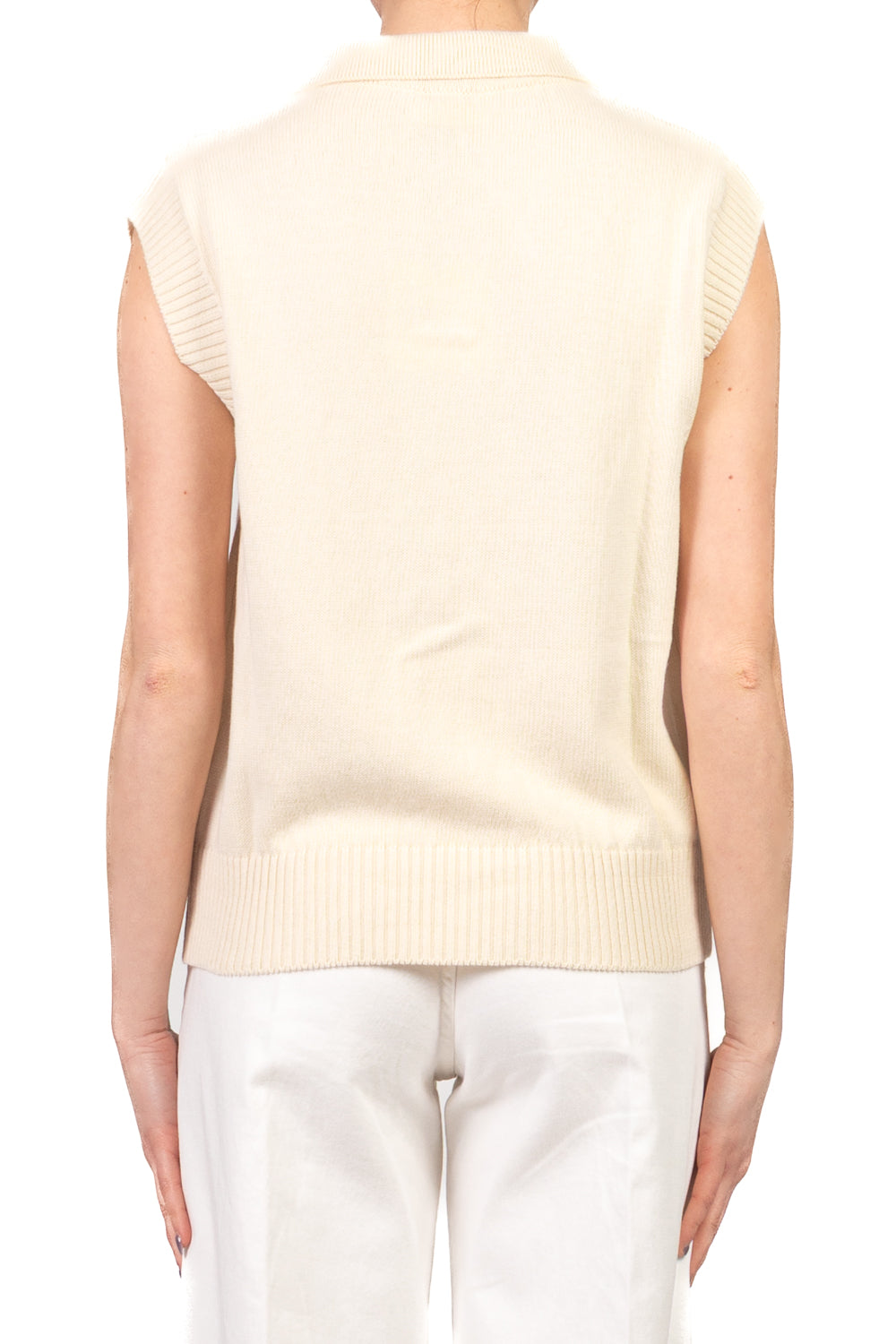 Gilet dal design classico ed elegante, caratterizzato da scollo a V e colletto strutturato. Perfetto da indossare sopra camicie o bluse per un look sofisticato e versatile, adatto sia a outfit formali che casual chic.