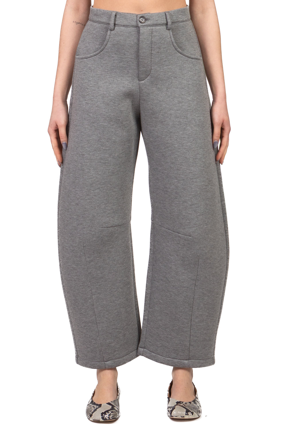 • Pantalone modello balloon in neoprene, dal design moderno e voluminoso che dona carattere al look. Il tessuto strutturato garantisce comfort e vestibilità avvolgente, mentre le quattro tasche aggiungono praticità e stile. Chiusura con lampo e bottone per una tenuta sicura. Perfetto per outfit contemporanei e di tendenza.