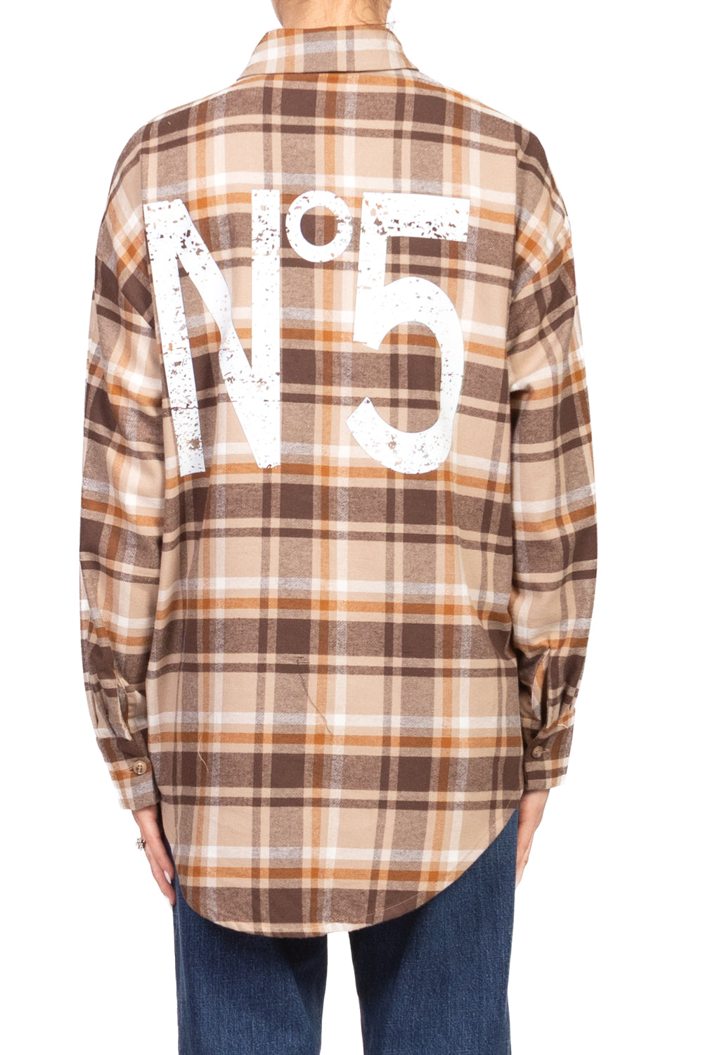 • Camicia in flanella a fantasia check, con stampa “N.5” applicata sia sul taschino frontale che sul retro. Un capo casual dal carattere deciso, perfetto per aggiungere un tocco urbano e originale ai tuoi look quotidiani.