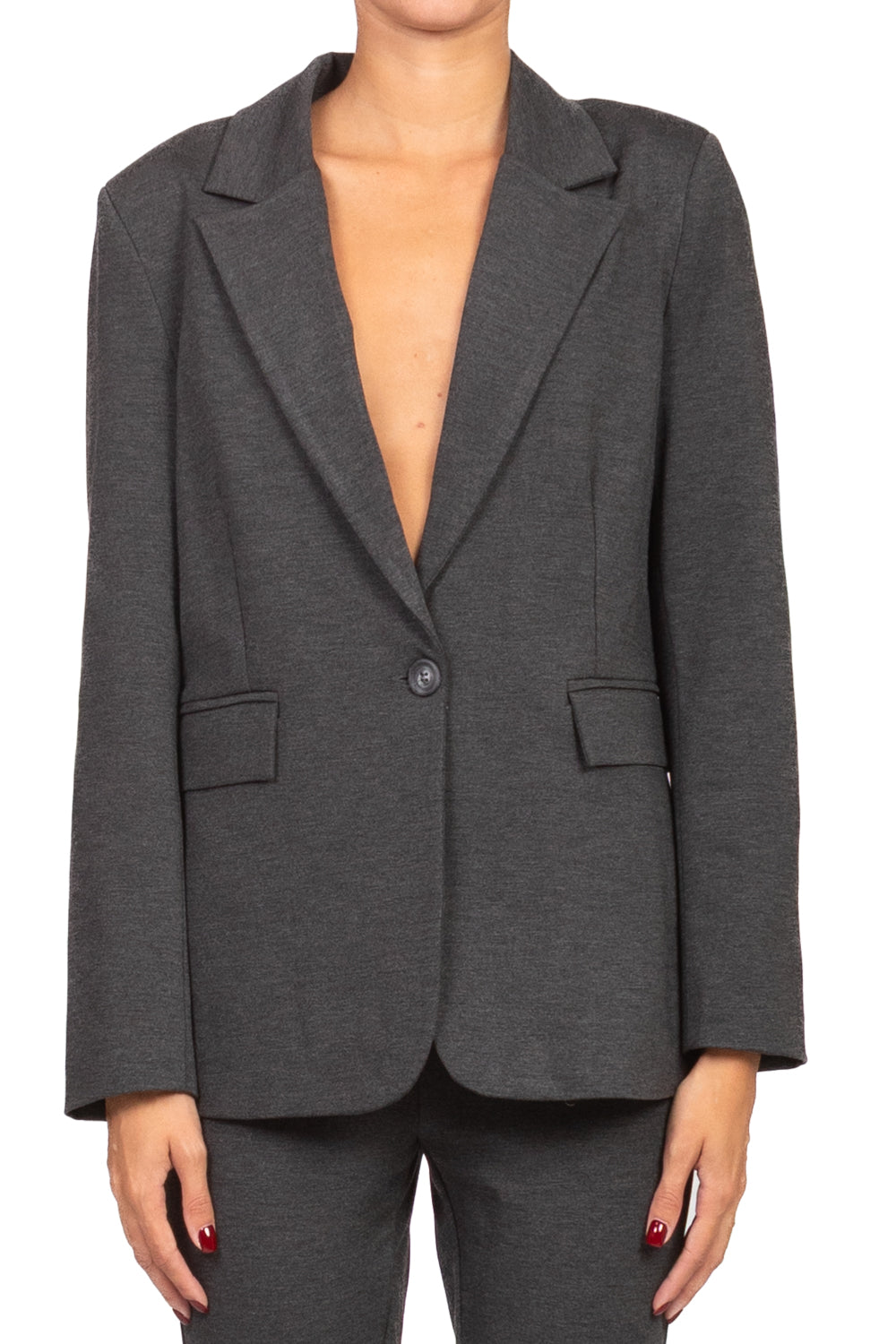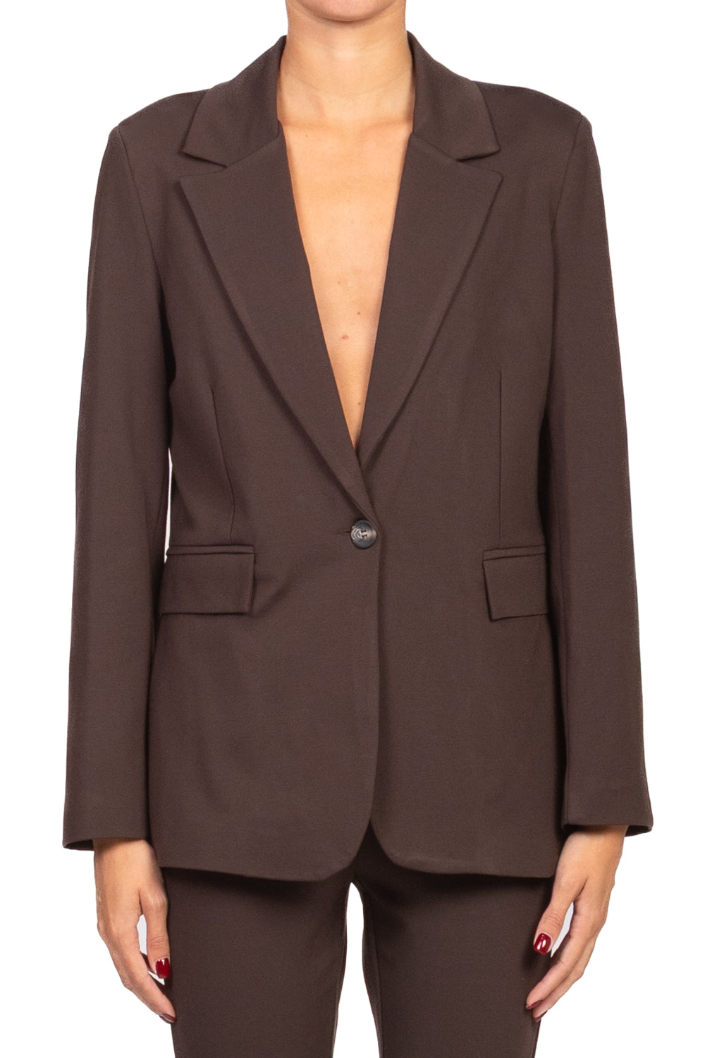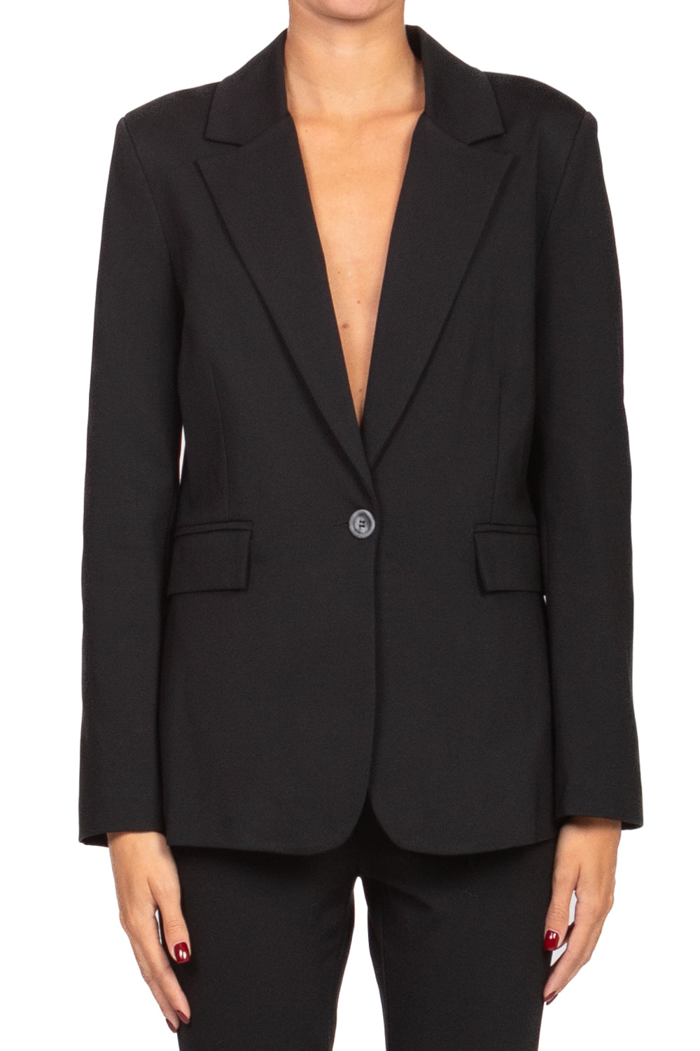• Giacca in morbido tessuto punto milano, caratterizzata da chiusura con un solo bottone, tasche frontali funzionali e spacchetto posteriore per una maggiore libertà di movimento. Foderata internamente per un comfort ottimale, è la scelta perfetta per un look raffinato e moderno.