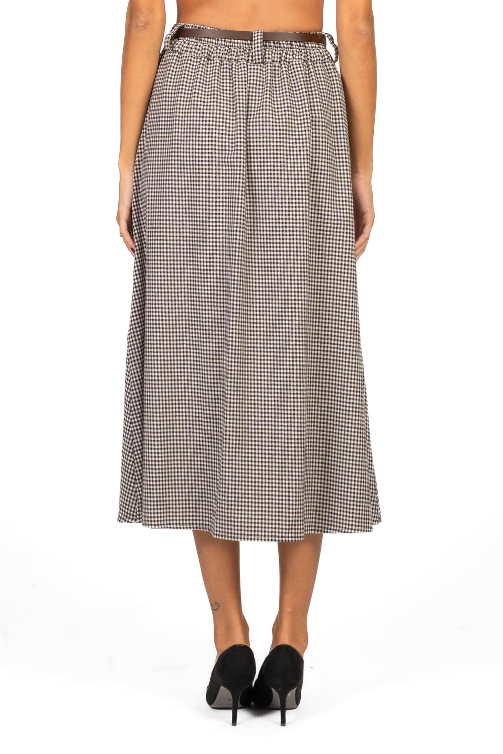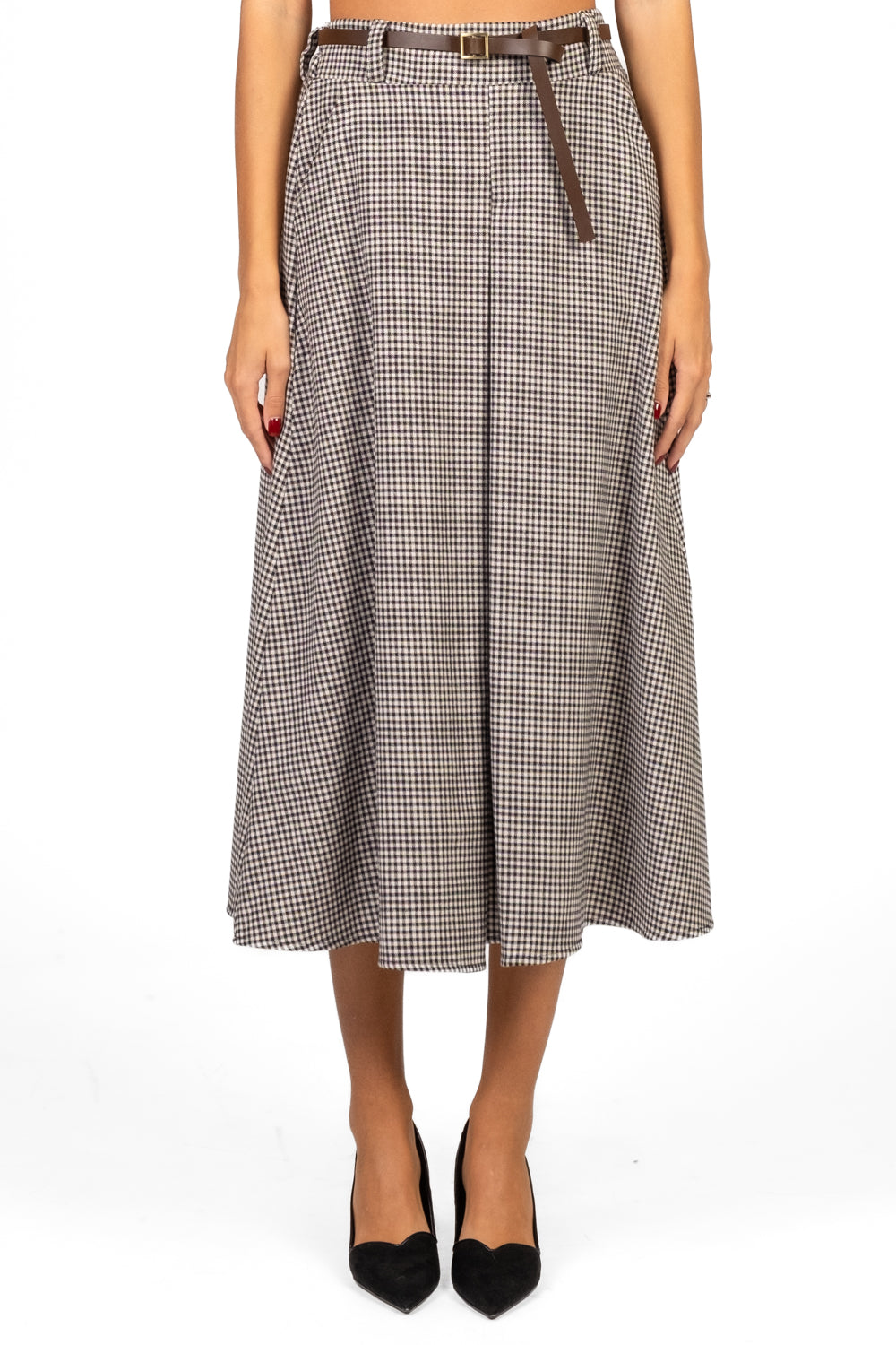 • Gonna a trapezio con piega, in fantasia quadretti, caratterizzata da tasche pratiche, elastico sul retro e cintura in vita per una vestibilità comoda e femminile. Perfetta per un look casual e raffinato.
