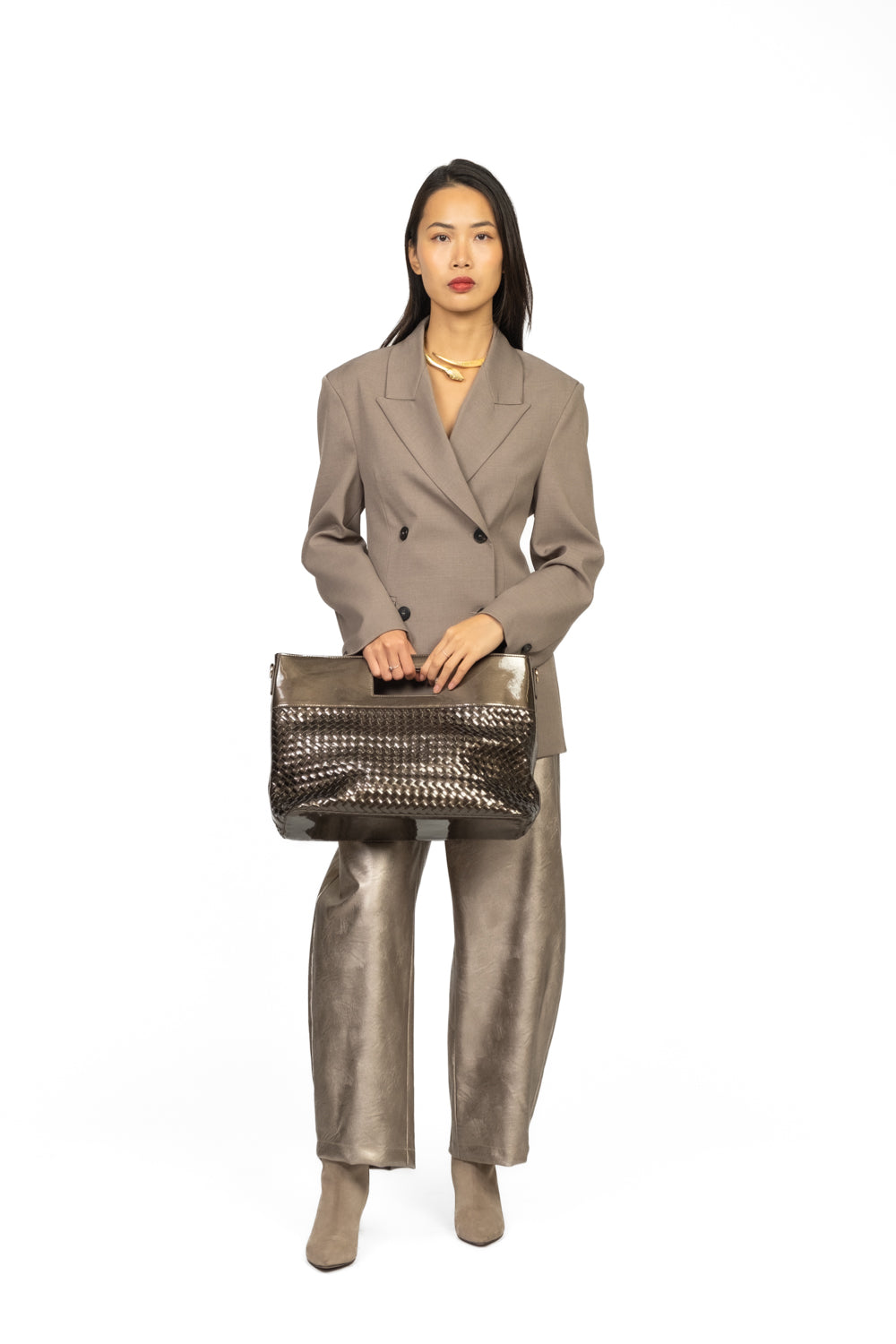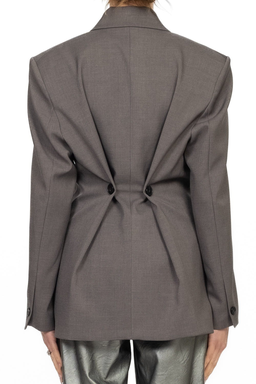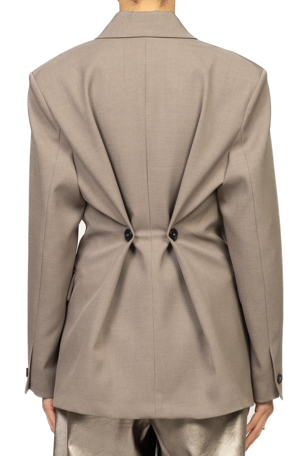 • Giacca doppiopetto sfiancata con spalline imbottite e bottoni sul retro. Foderata internamente, linee strutturate per un look elegante e contemporaneo.