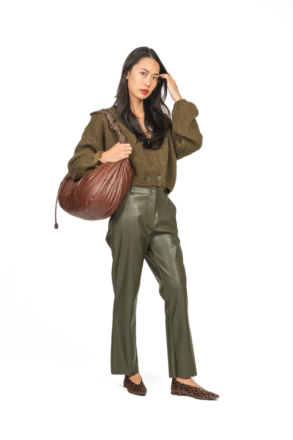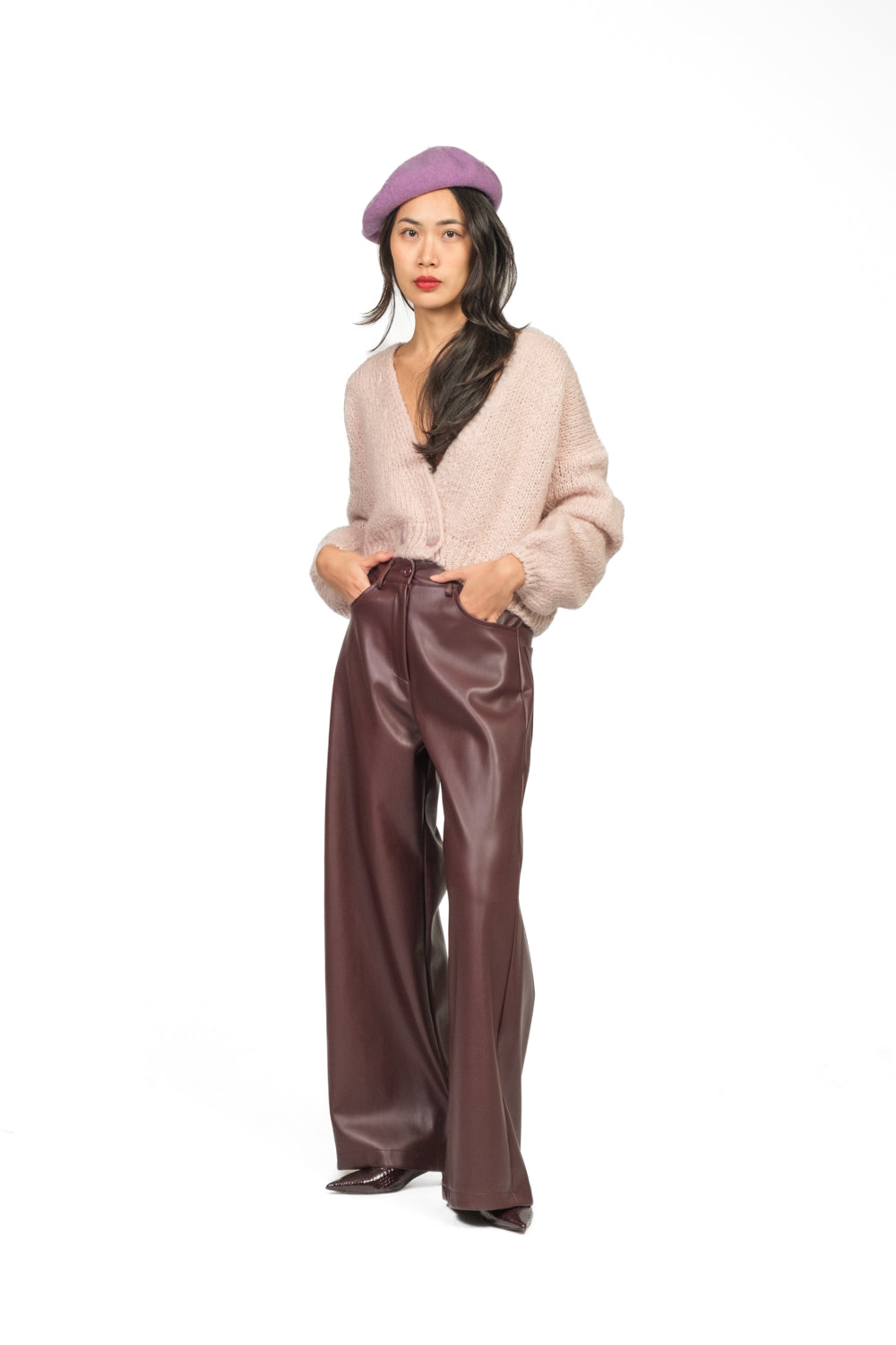 • Cardigan crop in misto mohair con chiusura doppio petto a due bottoni e scollo a V. Maniche leggermente a palloncino per un tocco femminile e moderno. Vestibilità morbida e stile contemporaneo.
