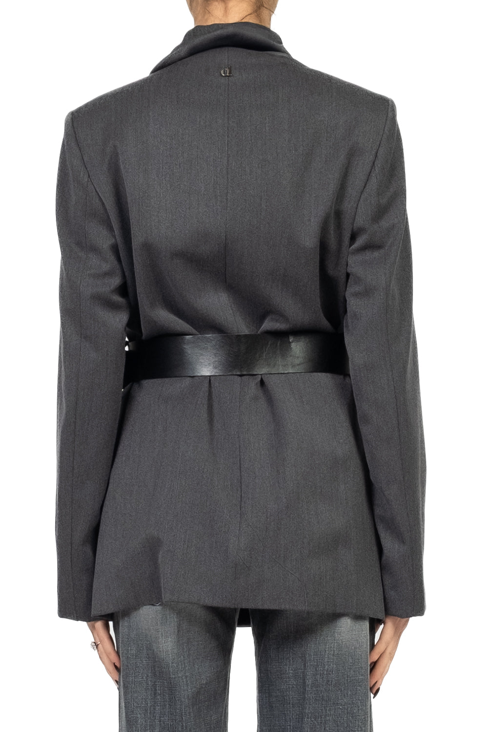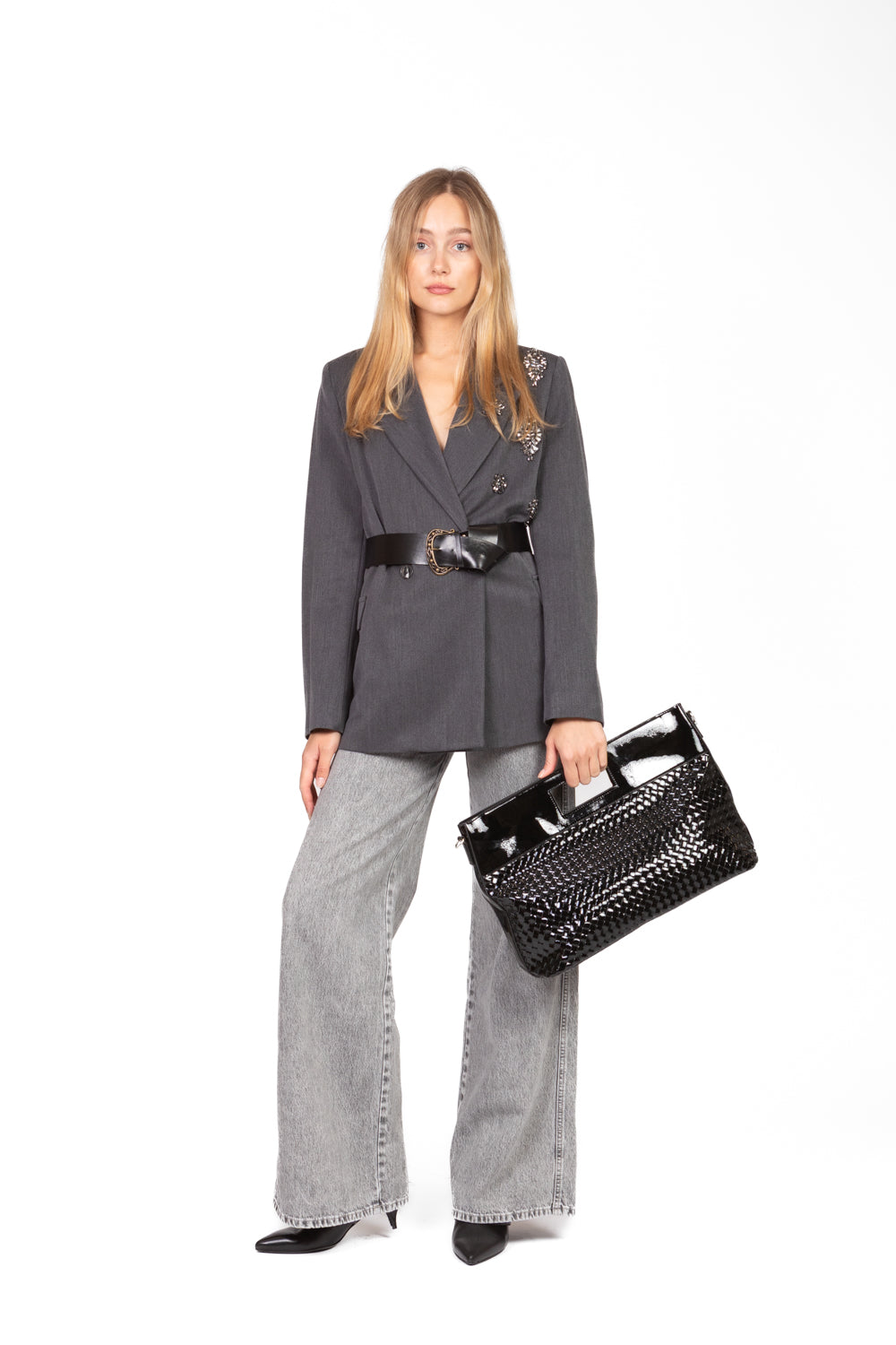 • Eleganza strutturata e dettagli ricercati definiscono questa giacca doppiopetto dal taglio sartoriale. La cintura in vita valorizza la silhouette creando un effetto femminile e definito, mentre le applicazioni decorative aggiungono un tocco distintivo e sofisticato.