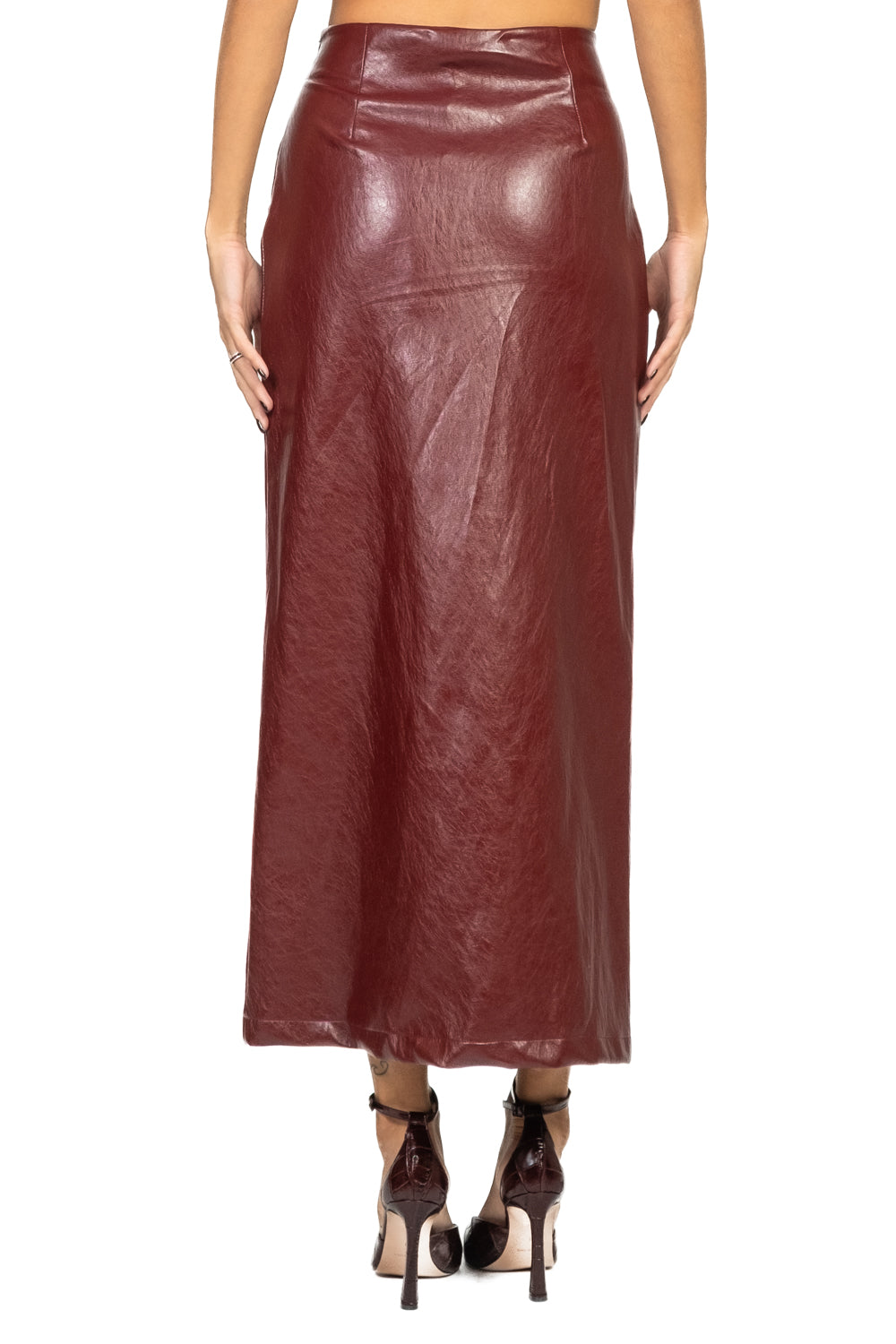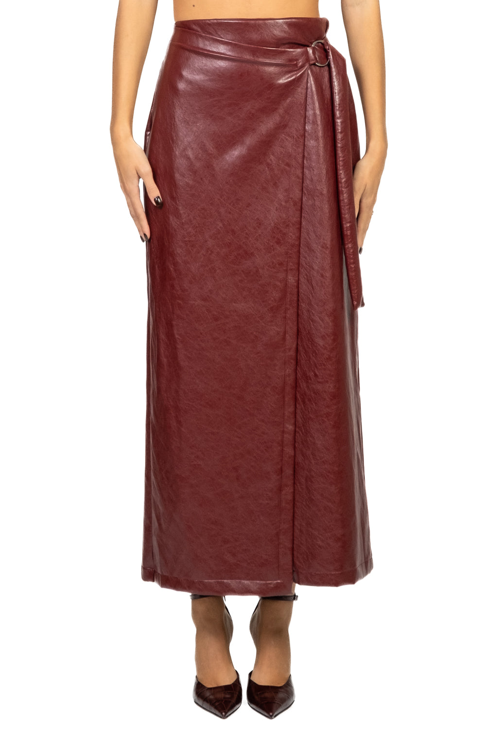 Gonna effetto portafoglio realizzata in ecopelle, con dettaglio decorativo ad anello sul davanti e chiusura laterale con zip invisibile. Linea moderna e femminile, ideale per look eleganti o casual-chic dal carattere contemporaneo.