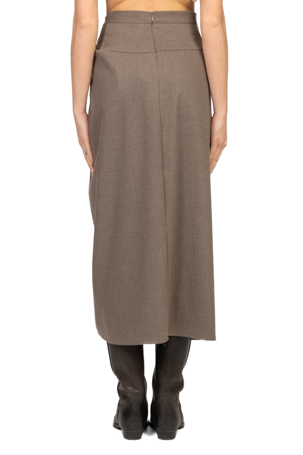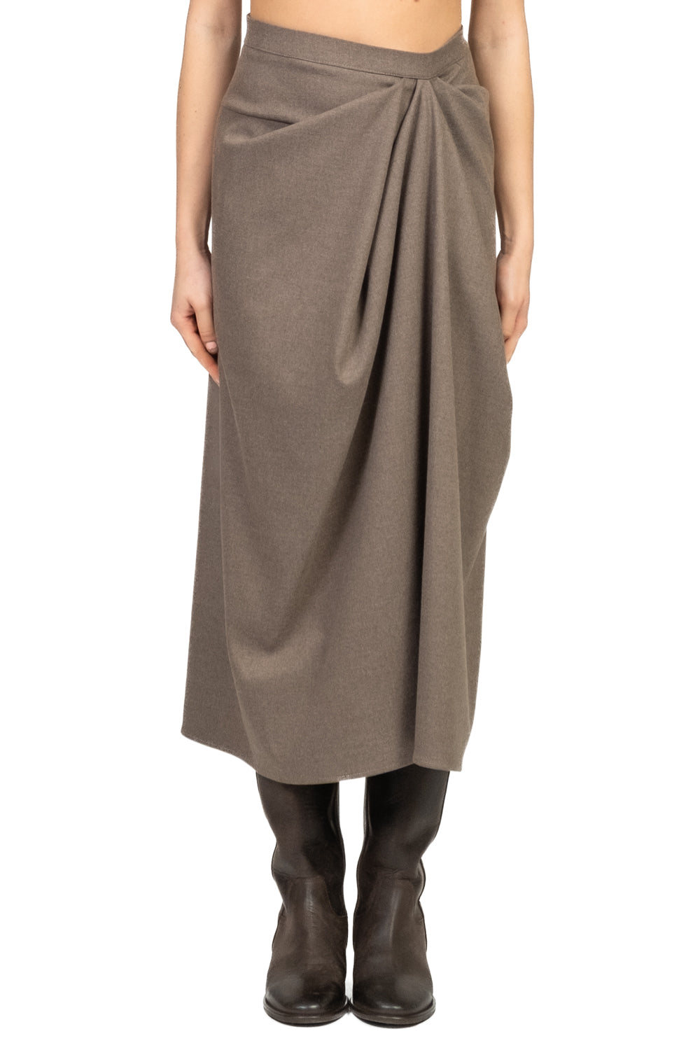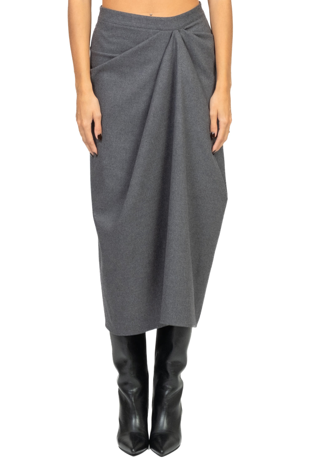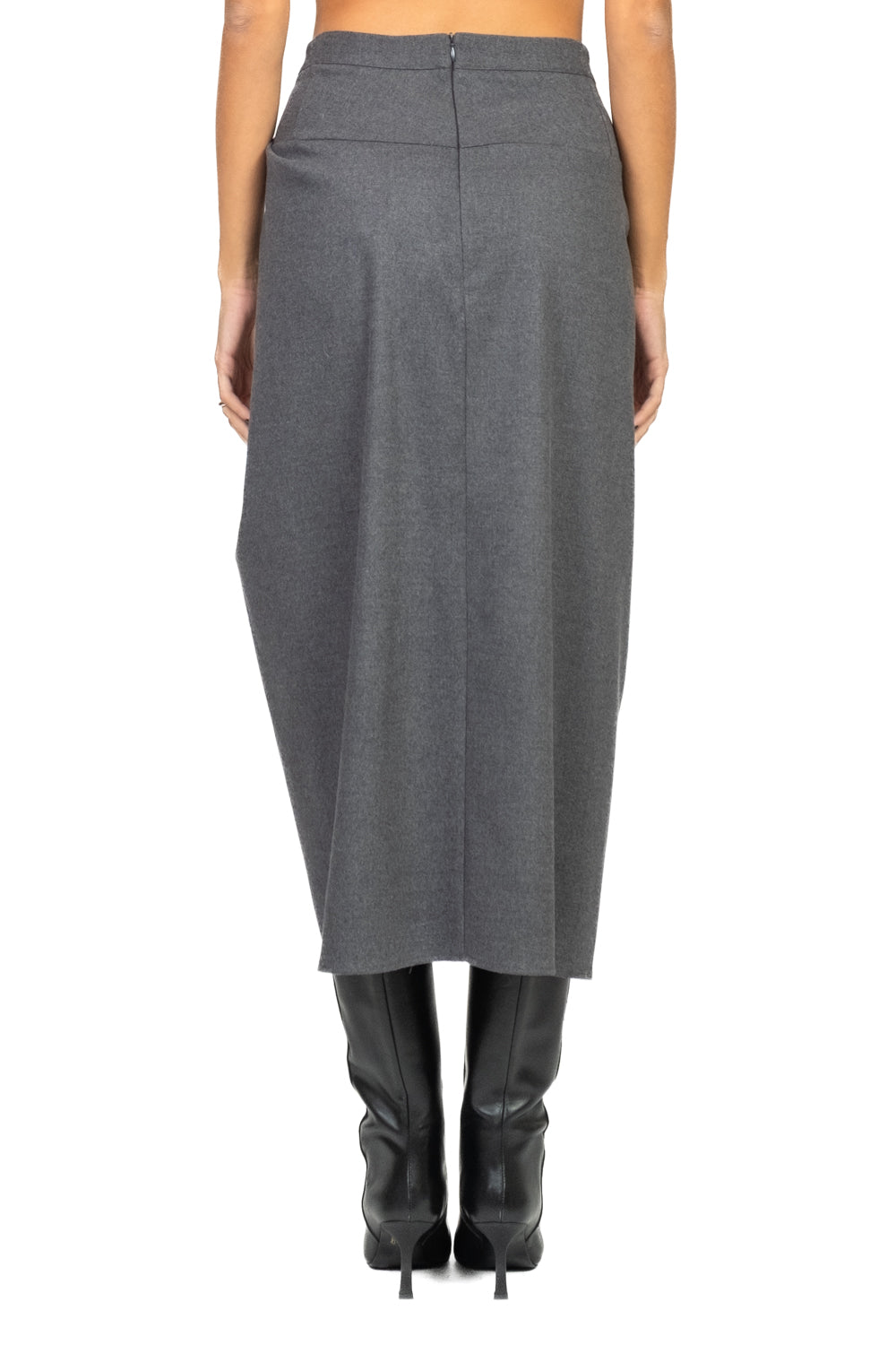• Gonna elegante con drappeggio sul davanti che aggiunge movimento e sofisticatezza al capo. Chiusura lampo sul retro per una vestibilità pulita e sicura. Perfetta per look formali o outfit contemporanei dal tocco femminile