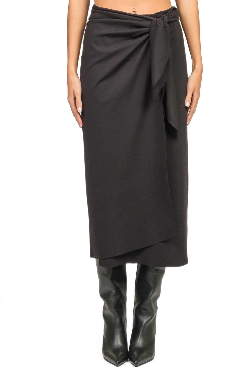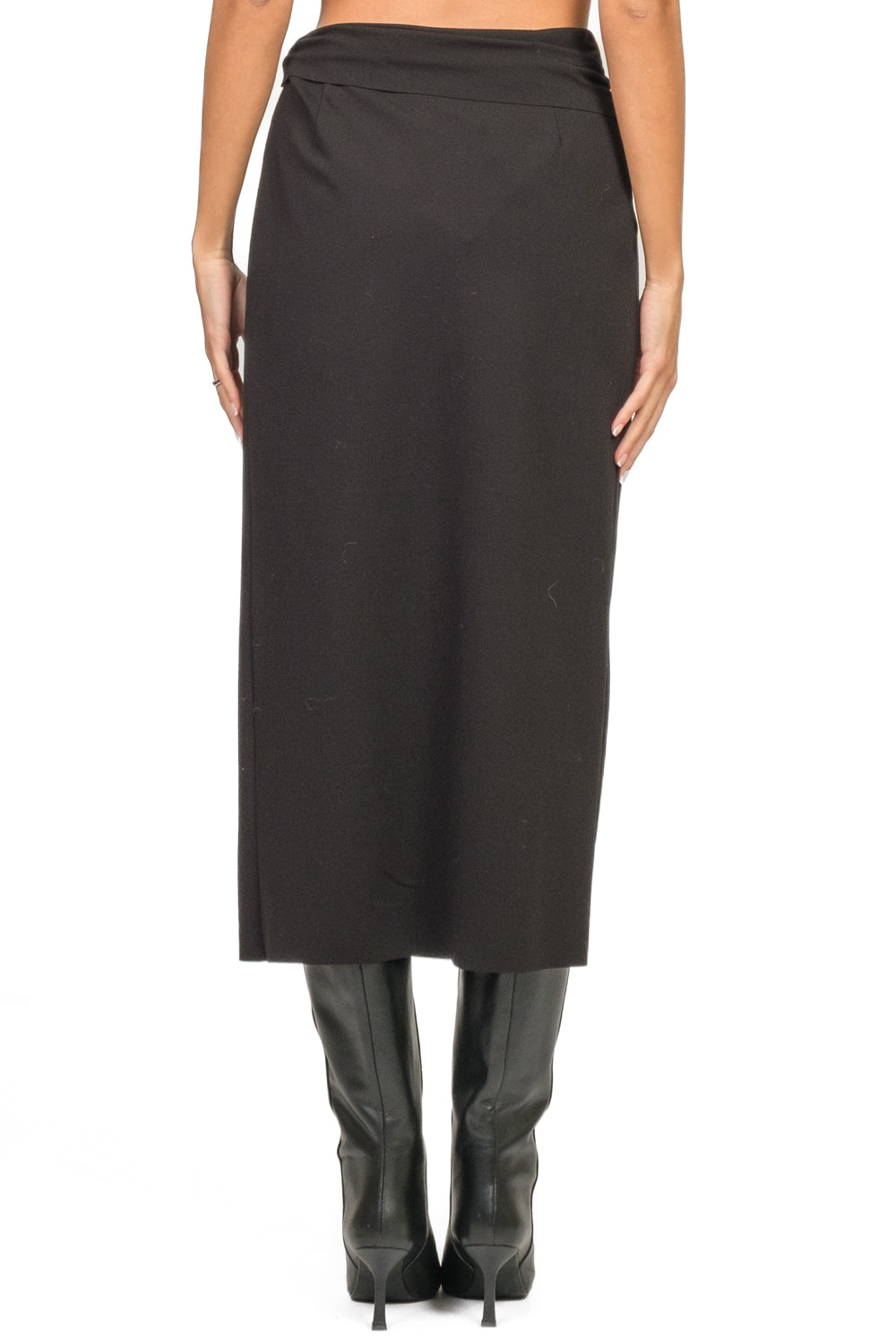 • Gonna in punto milano a portafoglio, con chiusura laterale tramite allacciatura esterna e bottone interno. Rifinita con taglio laser per dettagli precisi e moderni. Linea elegante e contemporanea, perfetta per look sofisticati.