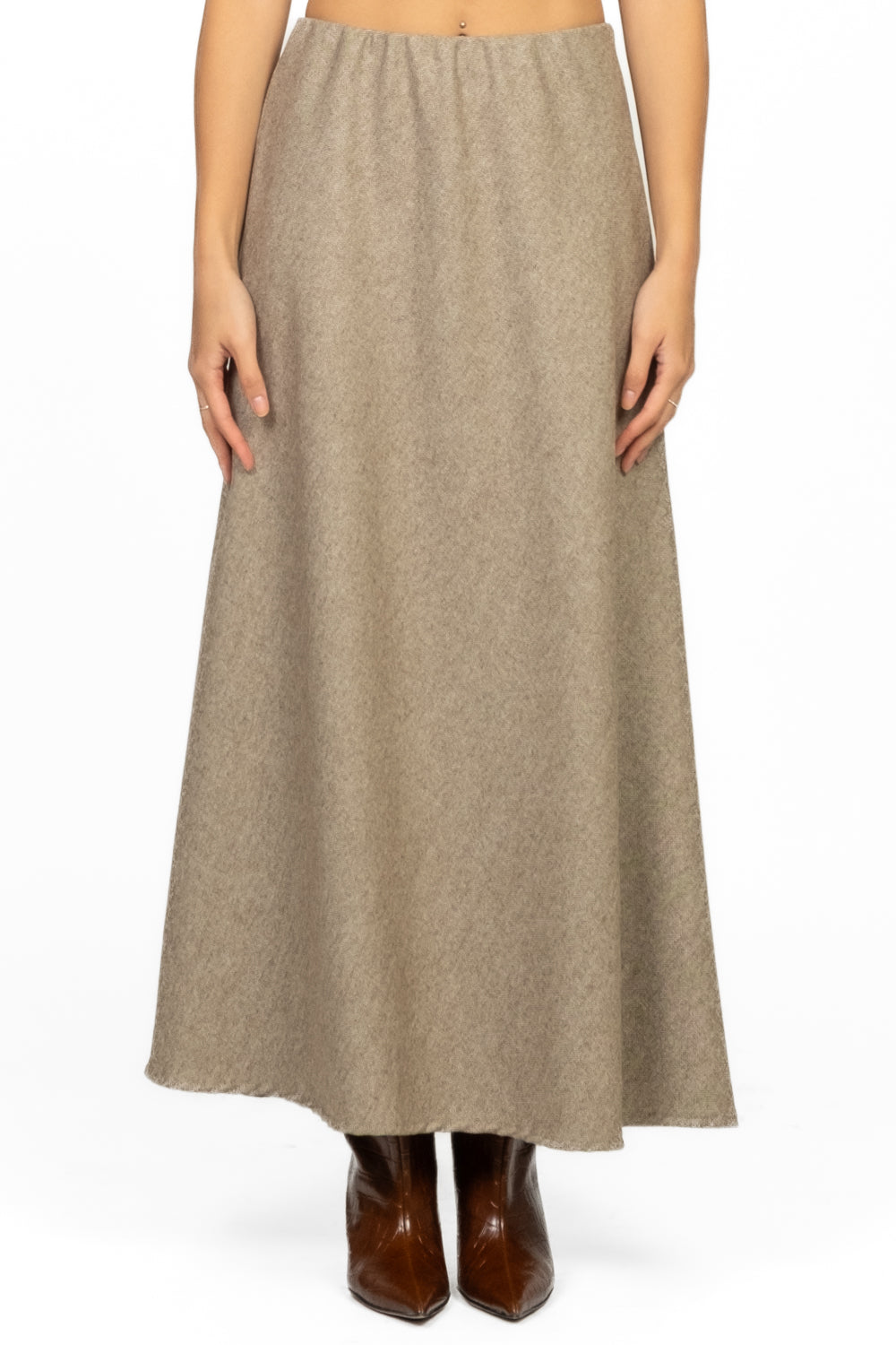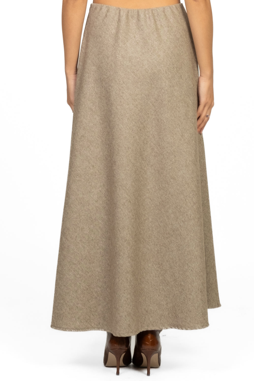• Gonna svasata puntinata in misto lana con elastico in vita. Senza tasche, linea morbida e femminile per un look caldo e versatile.