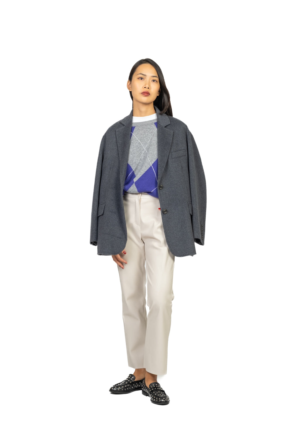 • Elegante e morbida, questa maglia in misto lana e cashmere presenta un raffinato motivo a rombi che aggiunge stile e personalità al capo. Il girocollo classico valorizza la silhouette e conferisce un tocco sofisticato, mentre la combinazione di fibre assicura comfort e calore.