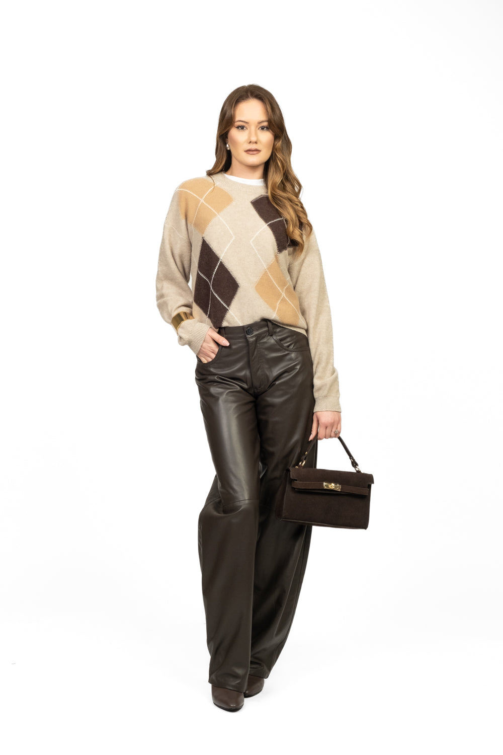 • Un capo che unisce tradizione e stile contemporaneo: questa maglia girocollo in maglia jacquard presenta un elegante motivo a rombi che dona profondità e carattere al design. La vestibilità regolare e la texture morbida la rendono ideale per ogni occasione, da indossare con jeans per un look casual o con pantaloni sartoriali per un’eleganza rilassata.
